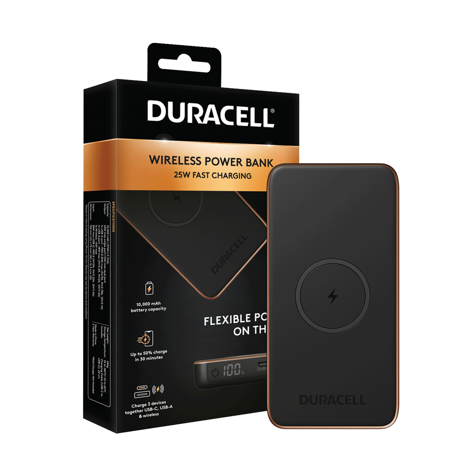 Duracell Wireless Power Bank 10,000mAh 25W Fast Charging PD3.0 USB-C & USB-A