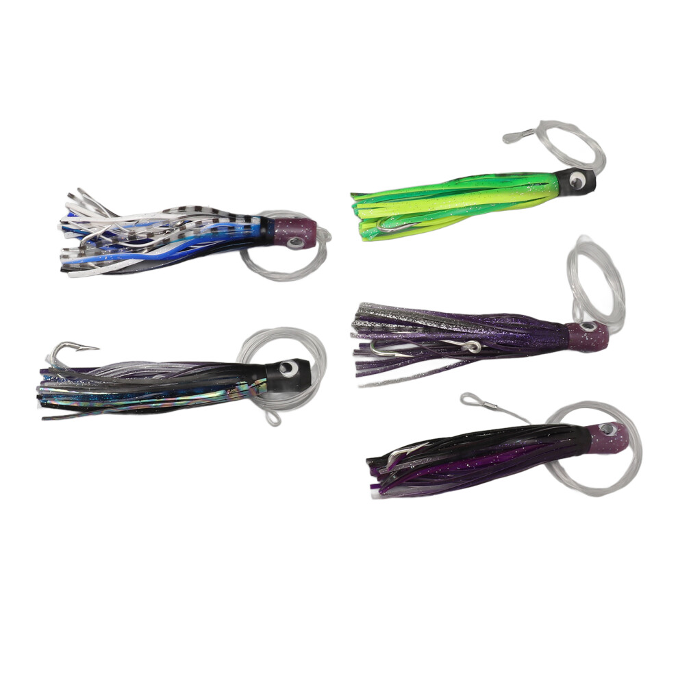 5PCS Saltwater Trolling Lure PVC Squid Skirted Deep Sea Fishing Lure for Marlin Tuna Mahi Dolphin Durado Wahoo