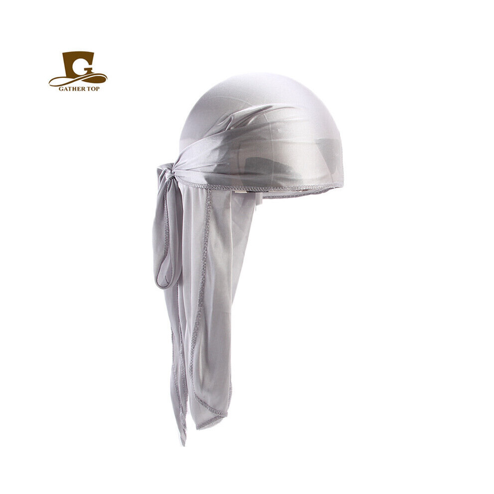 Men's Silk Durags Headwrap Turban Hat Wigs Doo Men Satin Durag Biker Headwear Headband Hair Accessories Extra Long Tail Du-Rag