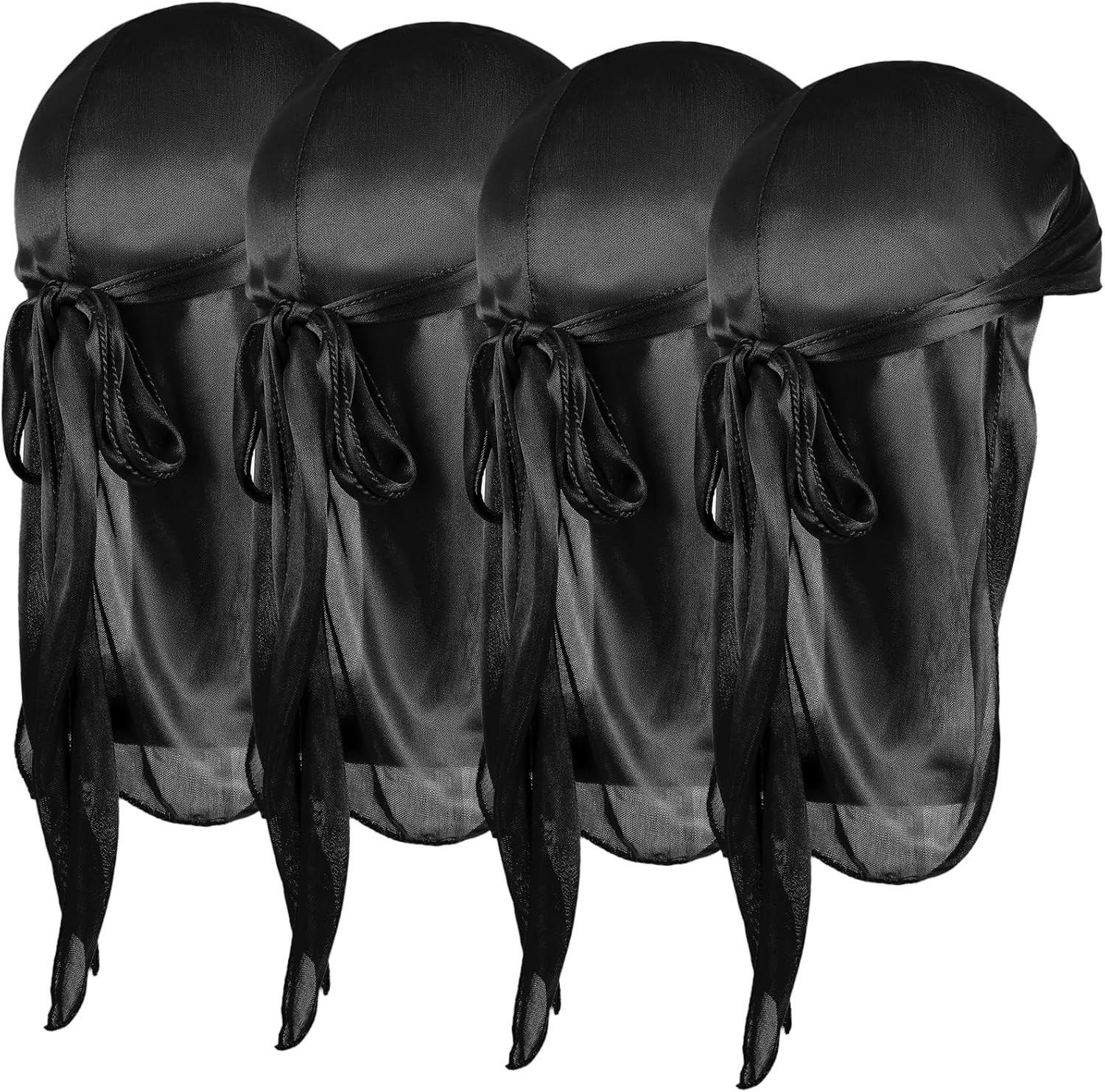 4pcs Silky Durag for Men Women Polyester Silky Durags Long Tail Headwrap Turban