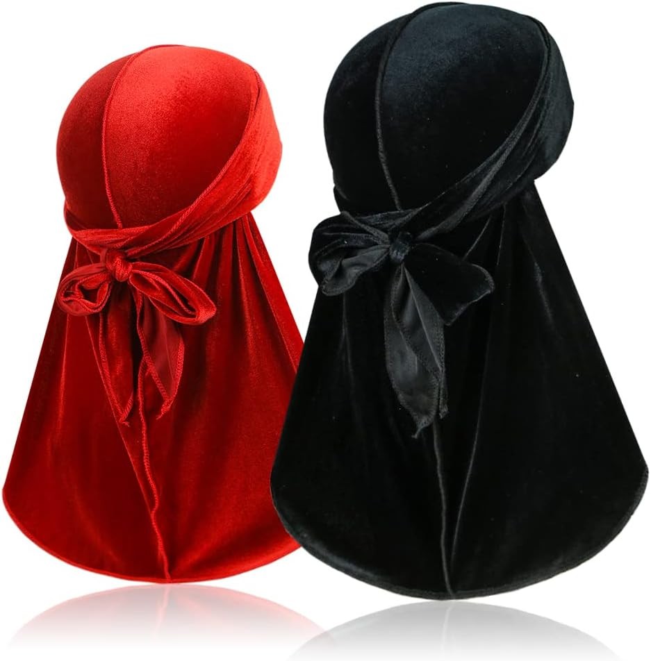 2 Pcs Velvet Durags for 360 Waves, Silky Doo Rag Durag Head wraps with Extra Lo