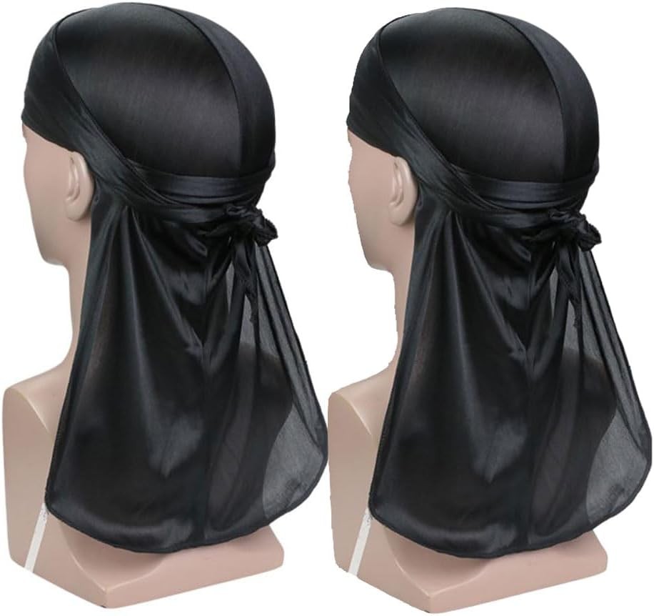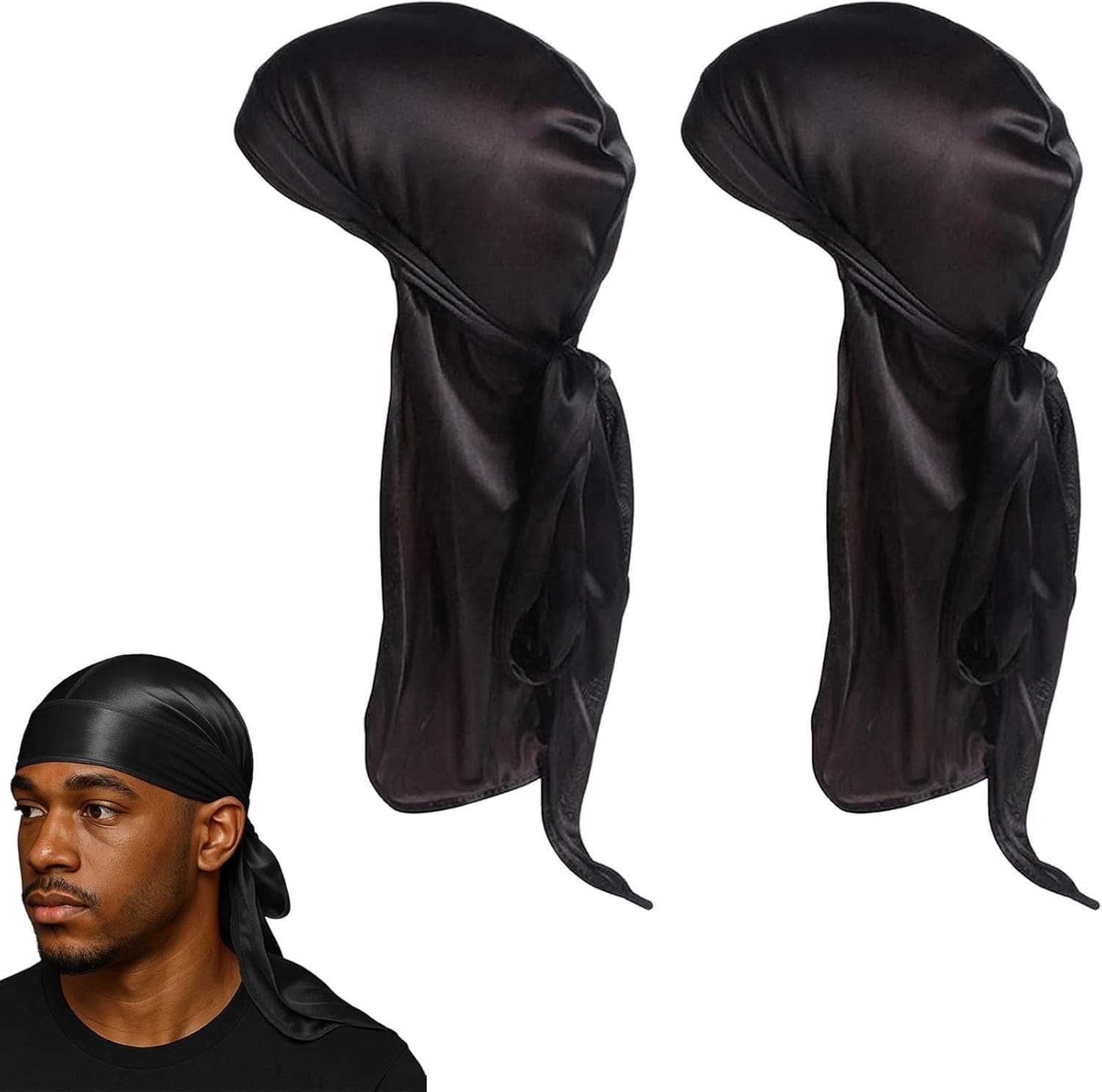2 PCS Silky Satin Durag, Long Tail Durag, durag mens silk durags, for Men and W