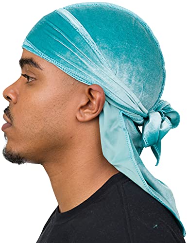 Veeta Superior Velvet Durag - Soft Velvet Durags for Men & Women, Long Double Wide Straps, Silky Durag Liner, Triple Stitched, Mint Green, One Size Fits All