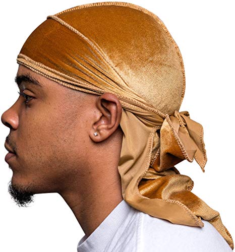 Veeta Superior Velvet Durag - Soft Velvet Durags for Men & Women, Long Double Wide Straps, Silky Durag Liner, Triple Stitched, Gold, One Size