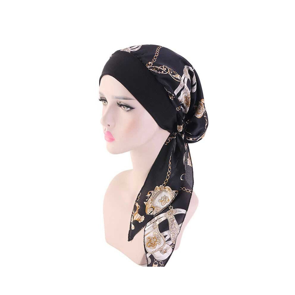 Muslim Hijab Turban Cap Women Flower Print Cancer Chemo Caps Hijab Scarf Durags Bandanas Long Tail Du-Rag Muslim Women Hijab