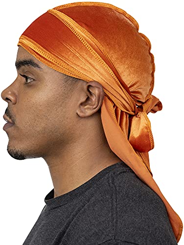 Silky Durag Cap, Velvet Durag for Men and Women, Perfect for 360 Waves, Dreadlocks and, Premium Velvet Durags for Headwrap, Ultra-Soft, Comfortable and Fashionable Everyday Accessory Orange