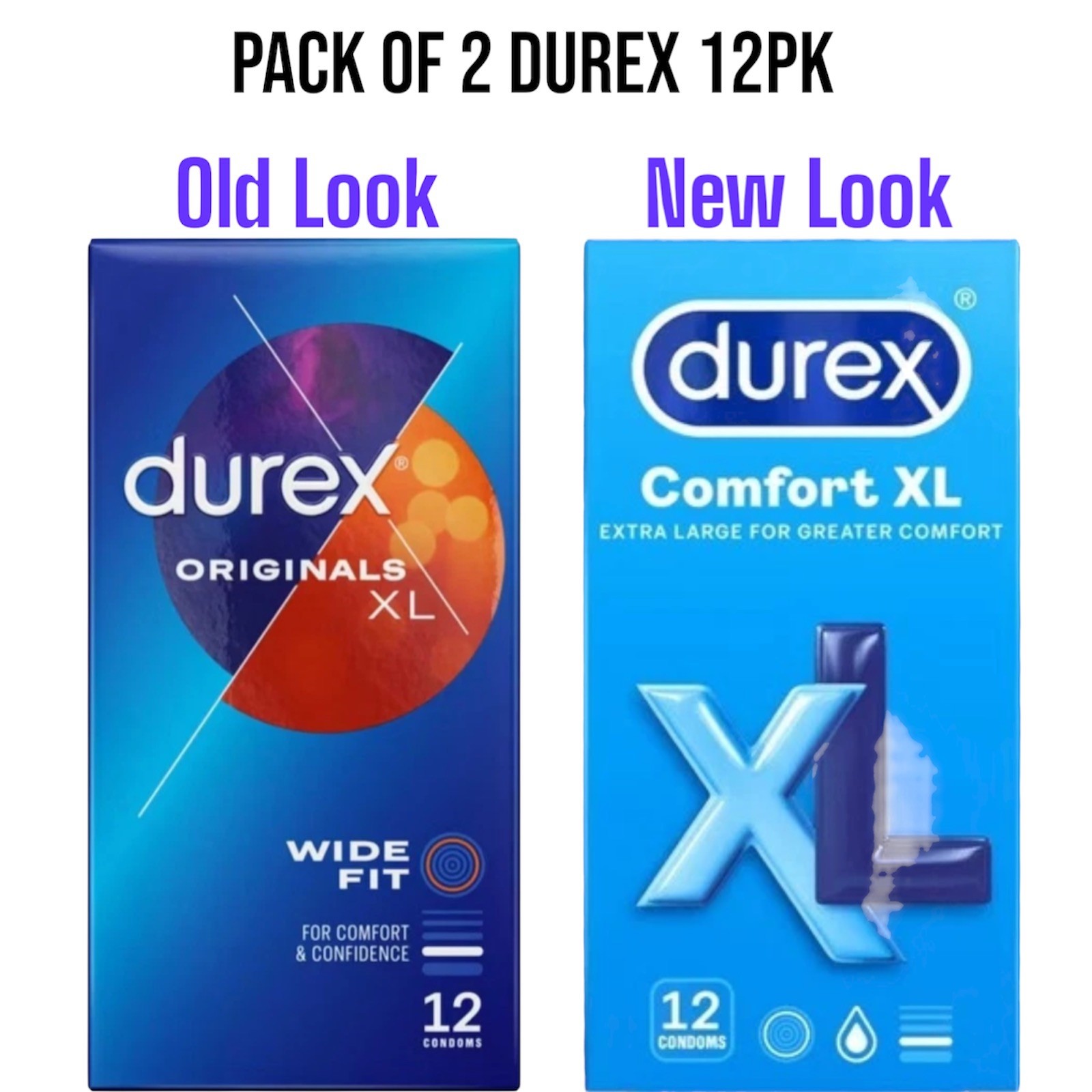 2X Durex XL Comfort Condoms Wide Fit Extra Large 57mm Free P&P Total 24Condoms