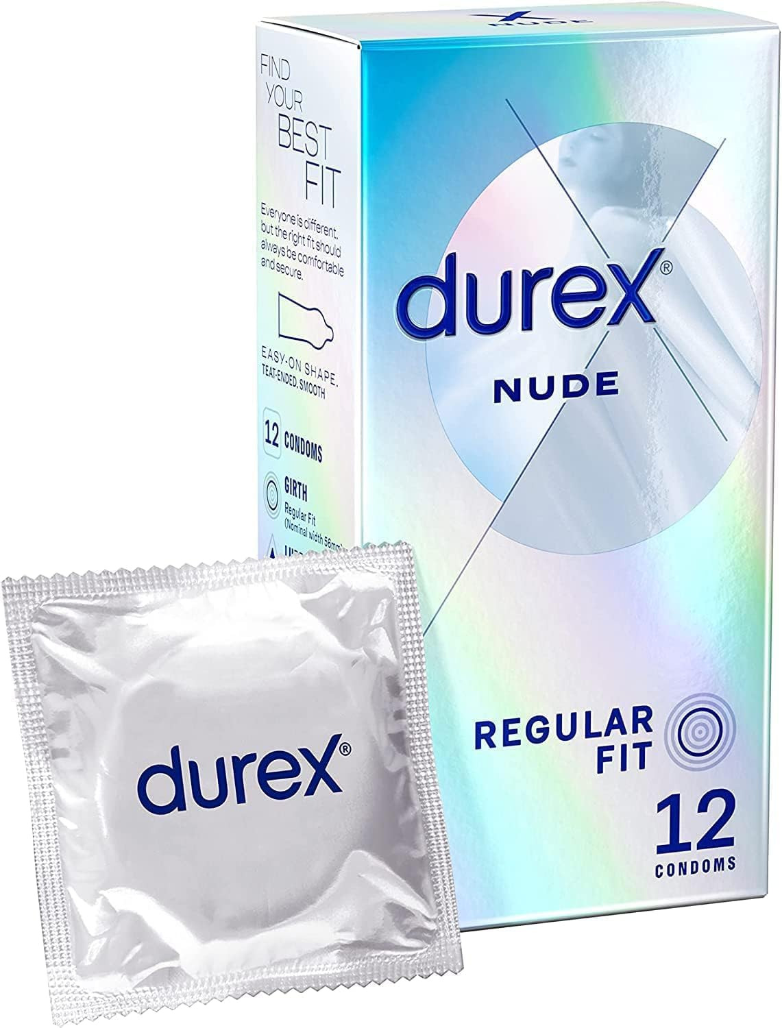 Durex Nude, Condoms, Regular Fit, 12S, Ultra Thin, Designed to Feel It All, Lube