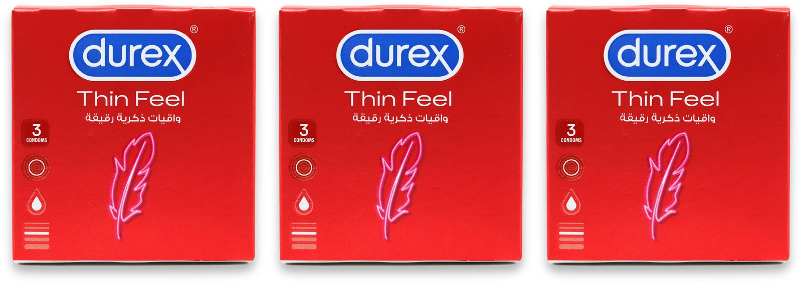 Durex Thin Feel Latex Condoms for More Sensitivity Regular Fit Size Pack 3