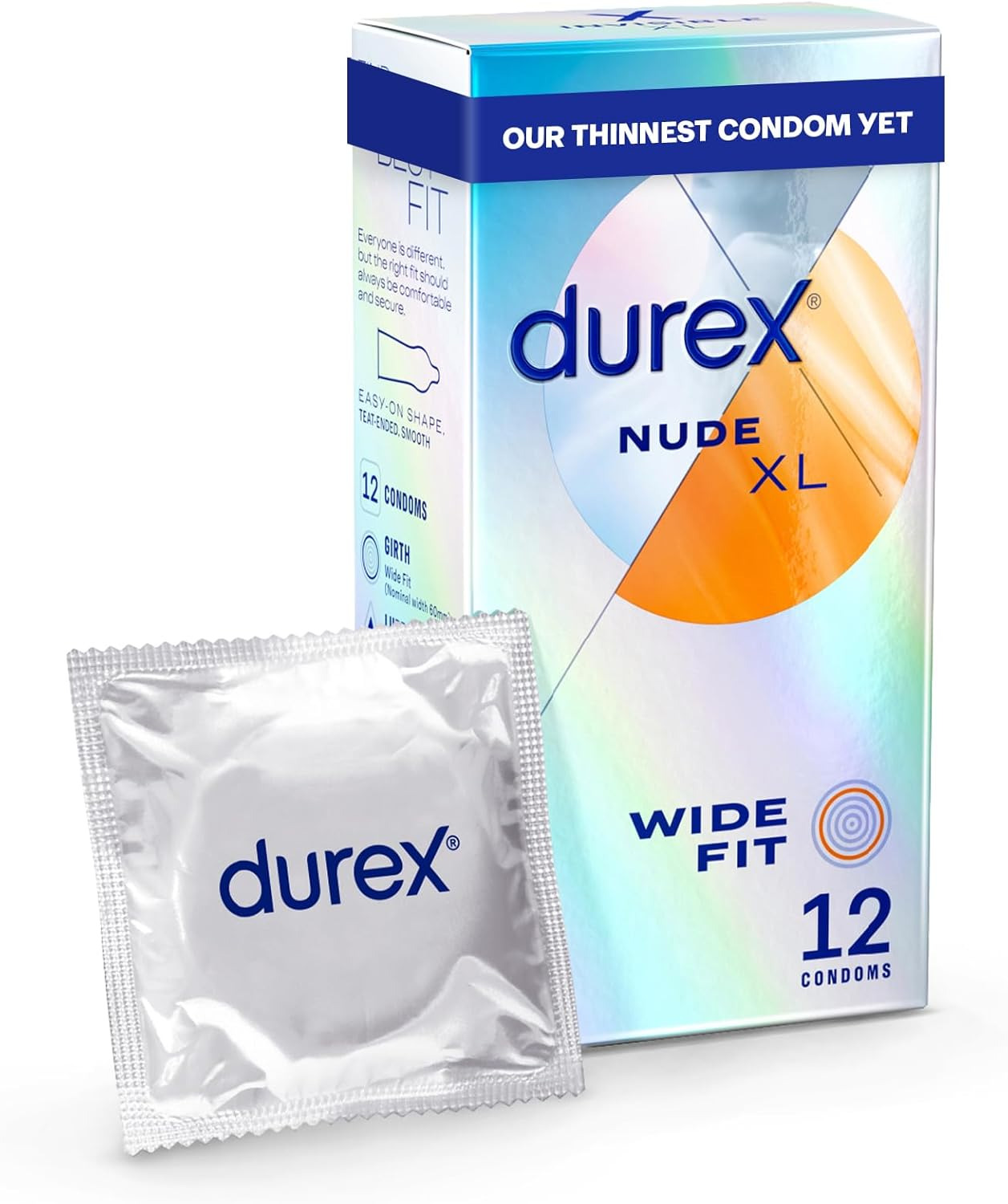 Durex Nude, Condoms, Wide Fit, 12s, Ultra Thin, Designed To Feel It All, With S