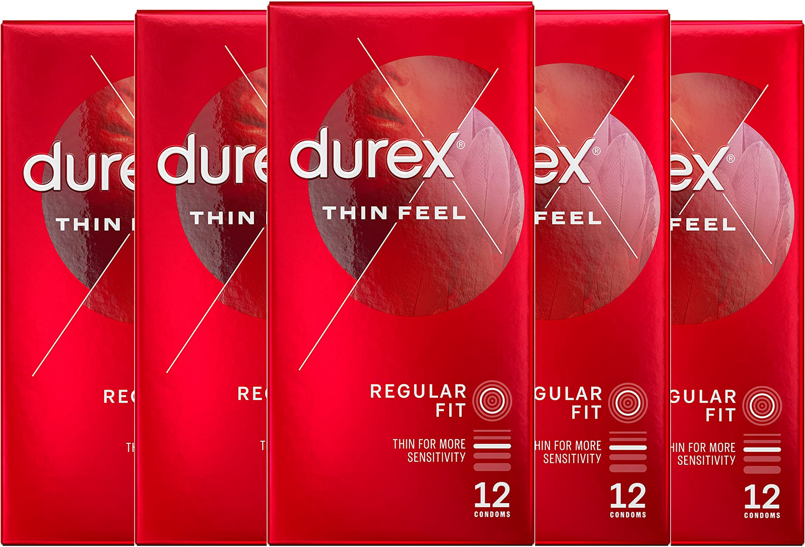 Durex Thin Feel Original Regular Latex Condoms 12 Pack x 5 (Total 60 Condoms)