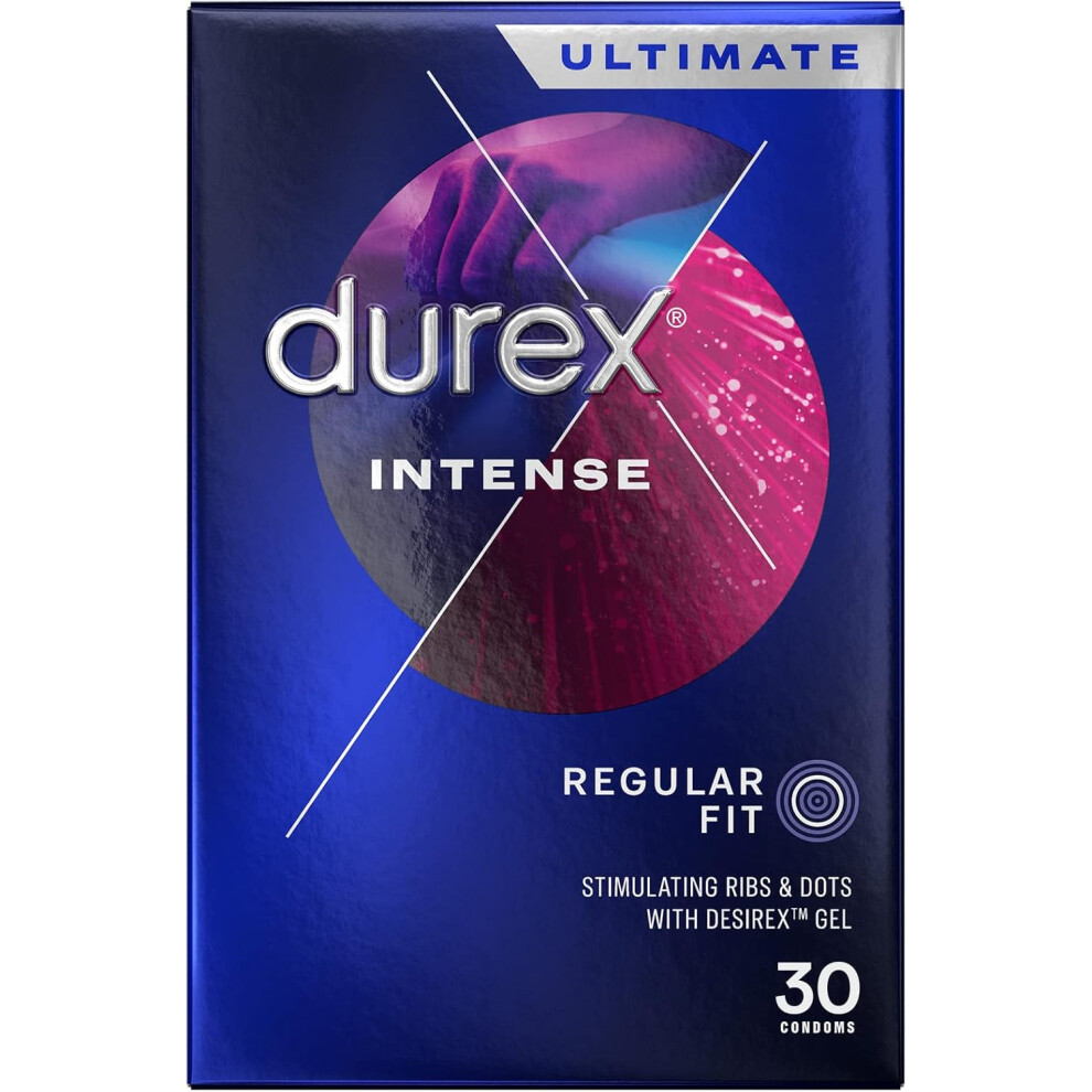 Durex Intense Condoms, Regular Fit, 30s, Easy On Shape, Dotted and Ribbed