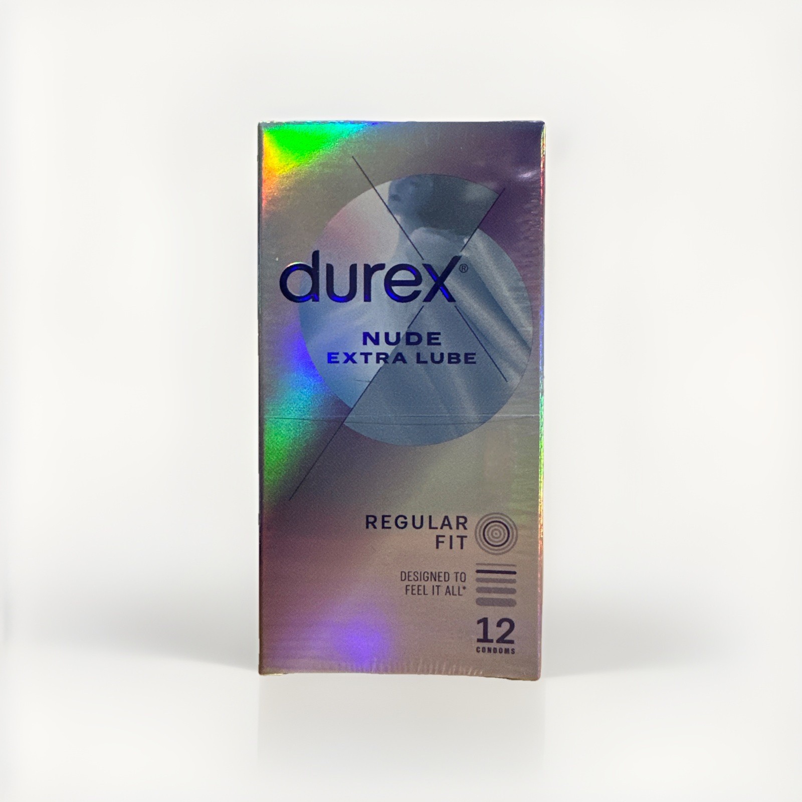 Durex Nude Extra Lube Regular Fit Latex Condoms Pack of 12 Sealed Long Expiry