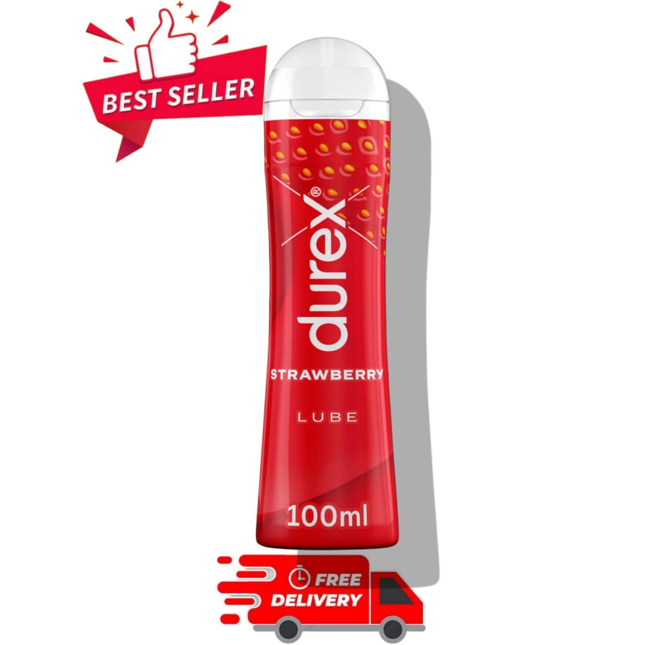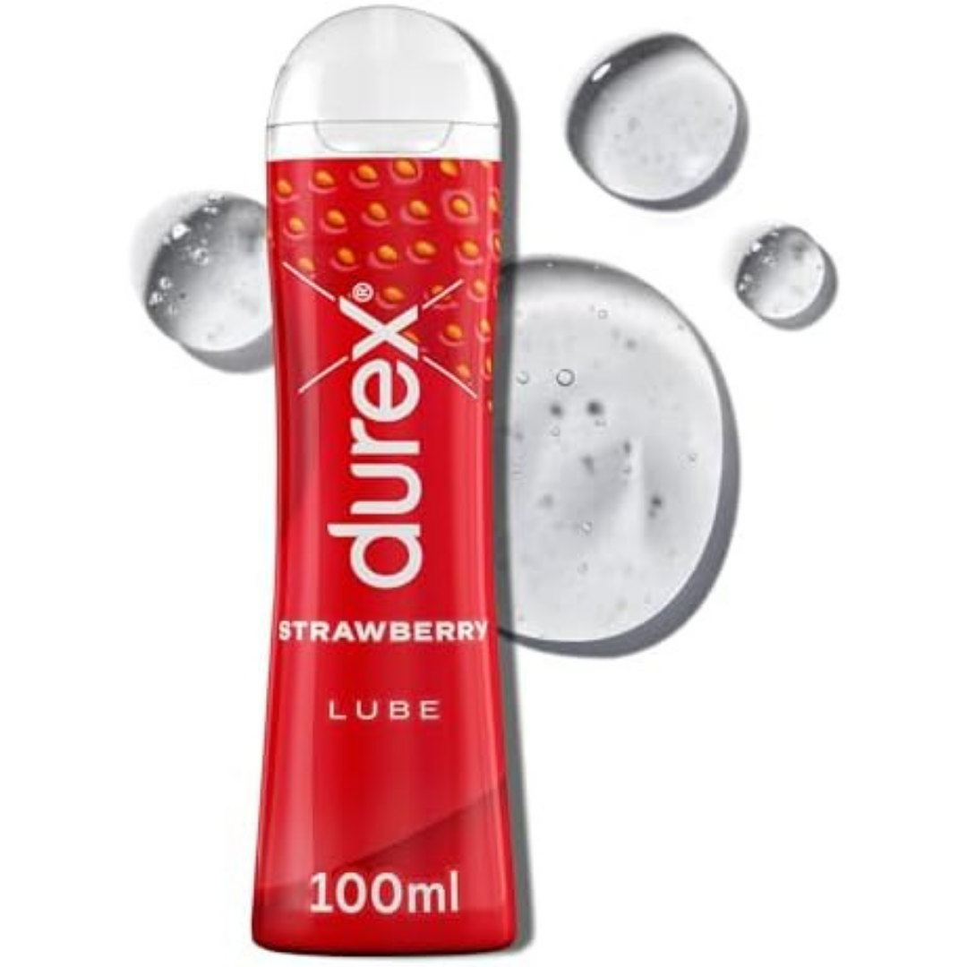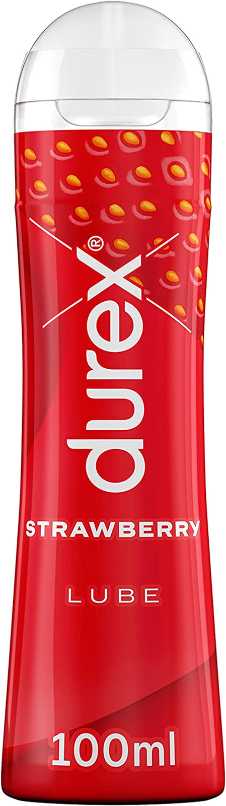 Durex Strawberry Flavoured Lube, 100ml, Water Based Lube, Gluten Free, Condom & Tou Compatible, Non Sticky, Non Staining, Quality Ingredients, Lubricant