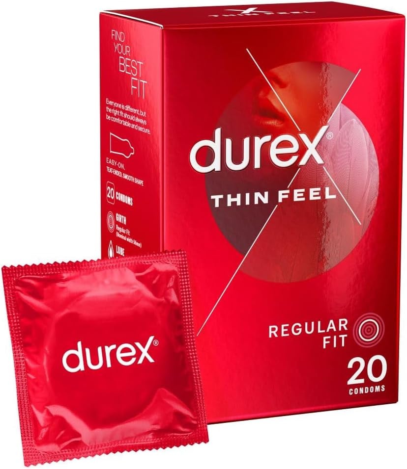 Durex Thin Feel Condoms, Regular Fit, 20S, Secure, Natural Latex, with Silicone