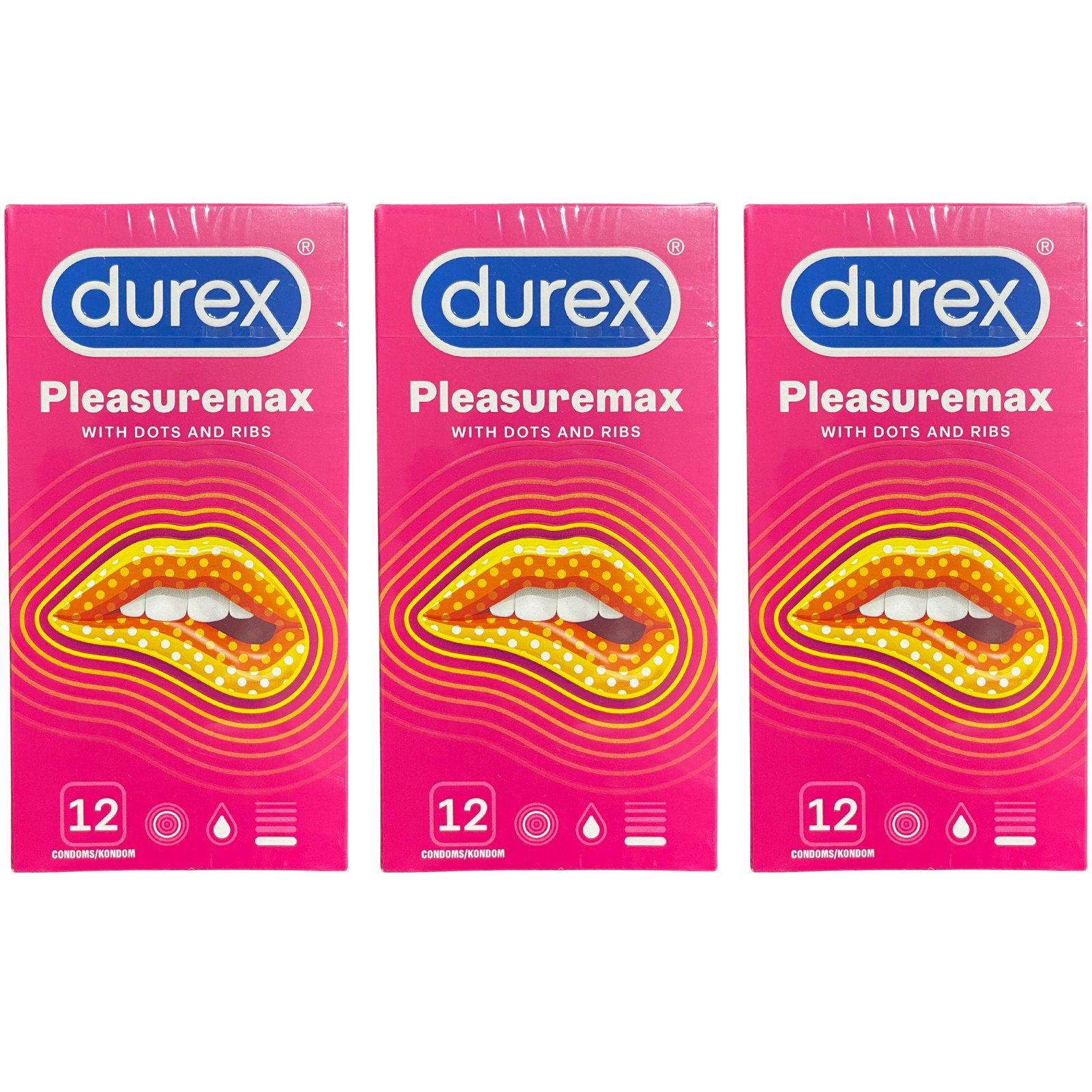 Durex Pleasure Max Condoms 12 Pack – Dots & Ribs Extra Stimulation - x3
