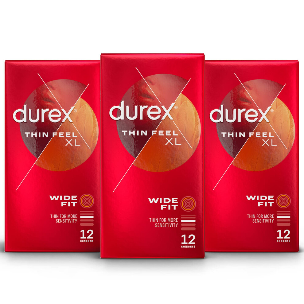 Durex Thin Feel XL Extra Large Condoms, Enhanced Sensitivity, Pack of 3 x 12, Total 36, First Aid Kits, Ultimate Comfort, Intimate