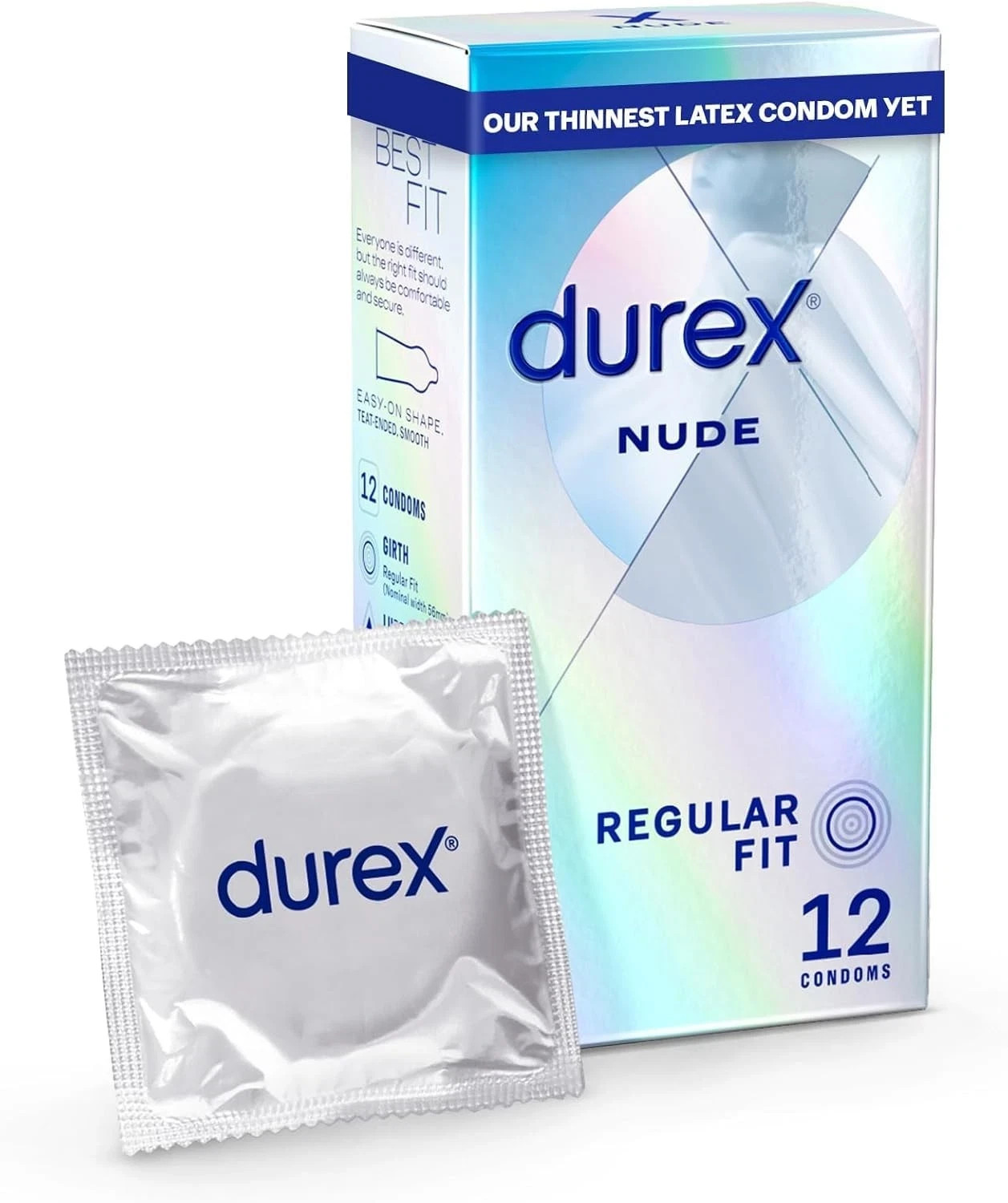 Durex Nude, Ultra Thin, 12 Condoms, Regular Fit, 1 count (Pack of 12), Nude