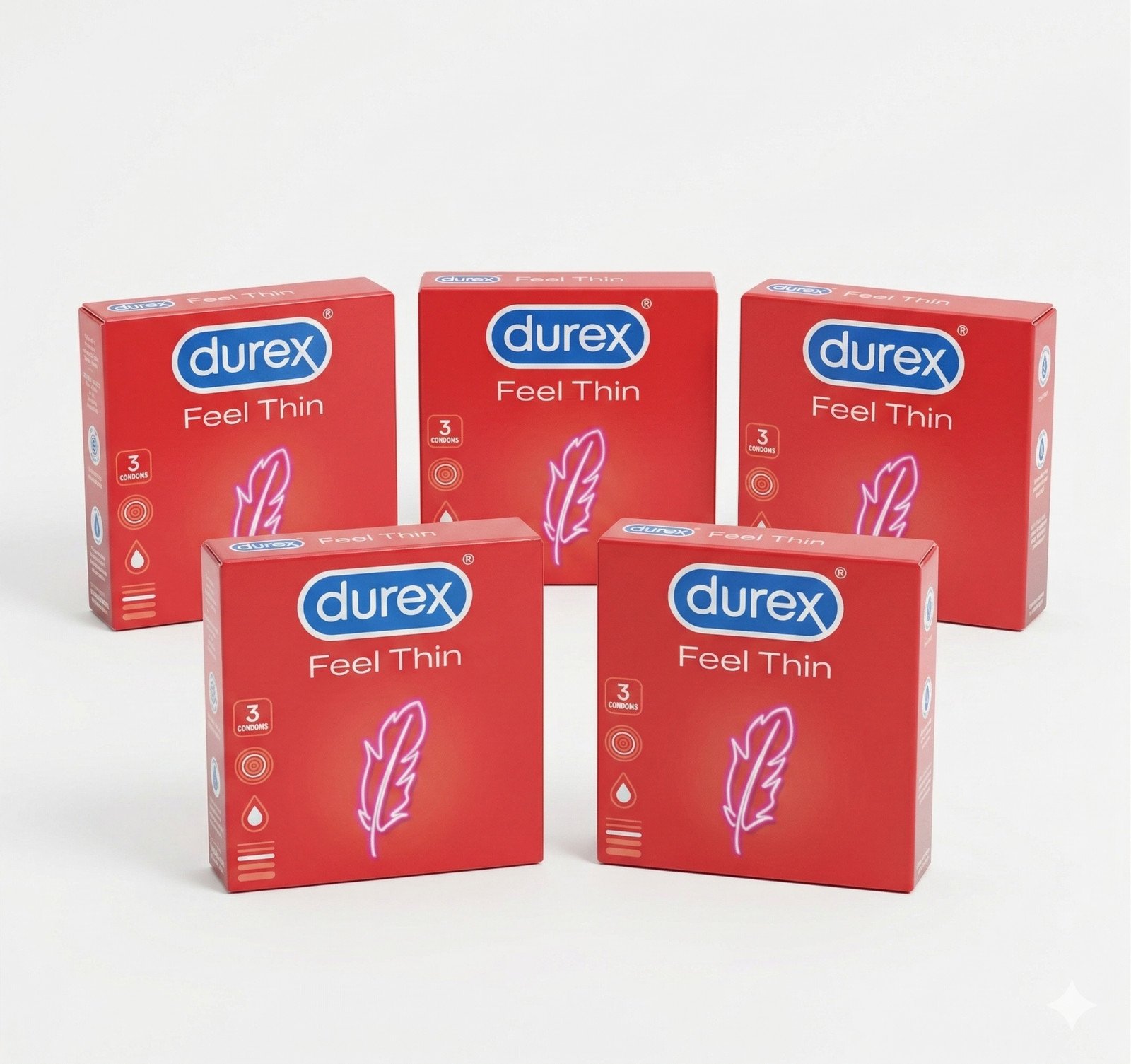 DUREX FEEL THIN CONDOMS 15 PCS ❤️ ULTRA-THIN PROTECTION (5 x 3 PACKS) XXL SET