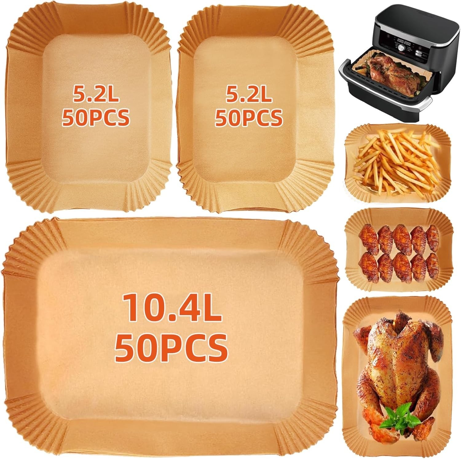 BYKITCHEN Air Fryer Liners for Ninja AF500UK AF500UKCP 10.4L, 100Pcs Air Fryer Accessories for Ninja Flex Drawer Megazone, Compatible for Duronic 10L /Instant 8.5L, Extra Large Parchemnt Paper Liners