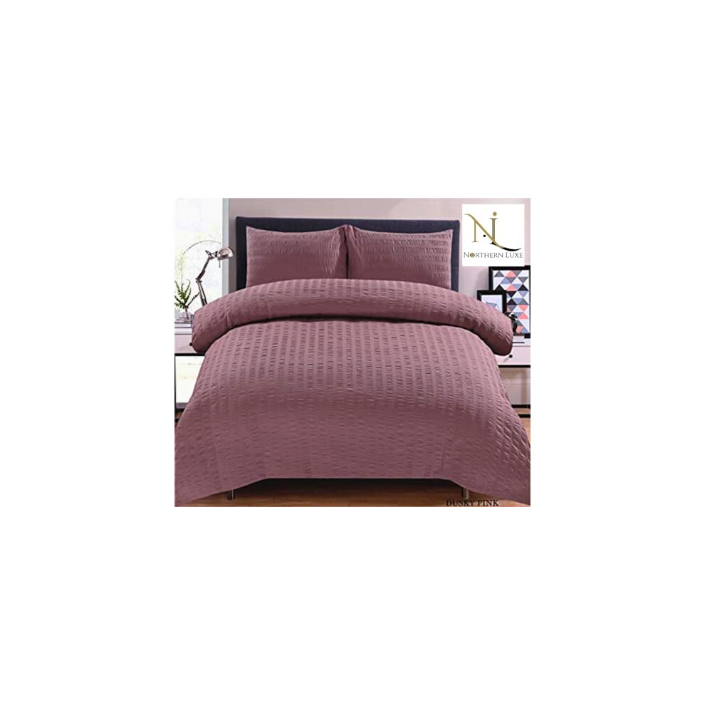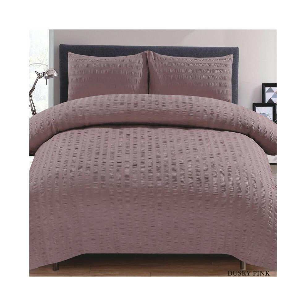 (Dusky Pink , Super King) Seersucker Duvet Cover Set Rich Cotton Bedding Sets All Sizes Available Cotton Soft Washable