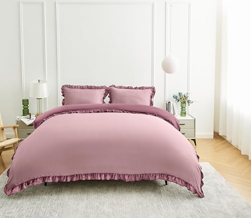 GC GAVENO CAVAILIA Frill Bedding Sets Ruffles Duvet Cover King Size | 3-Piece Kingsize Duvet Cover Sets With Pillowcases | Breathable & Washable Comforter Bed Cover 220x230 Cm, Baby Pink/Dusky Pink