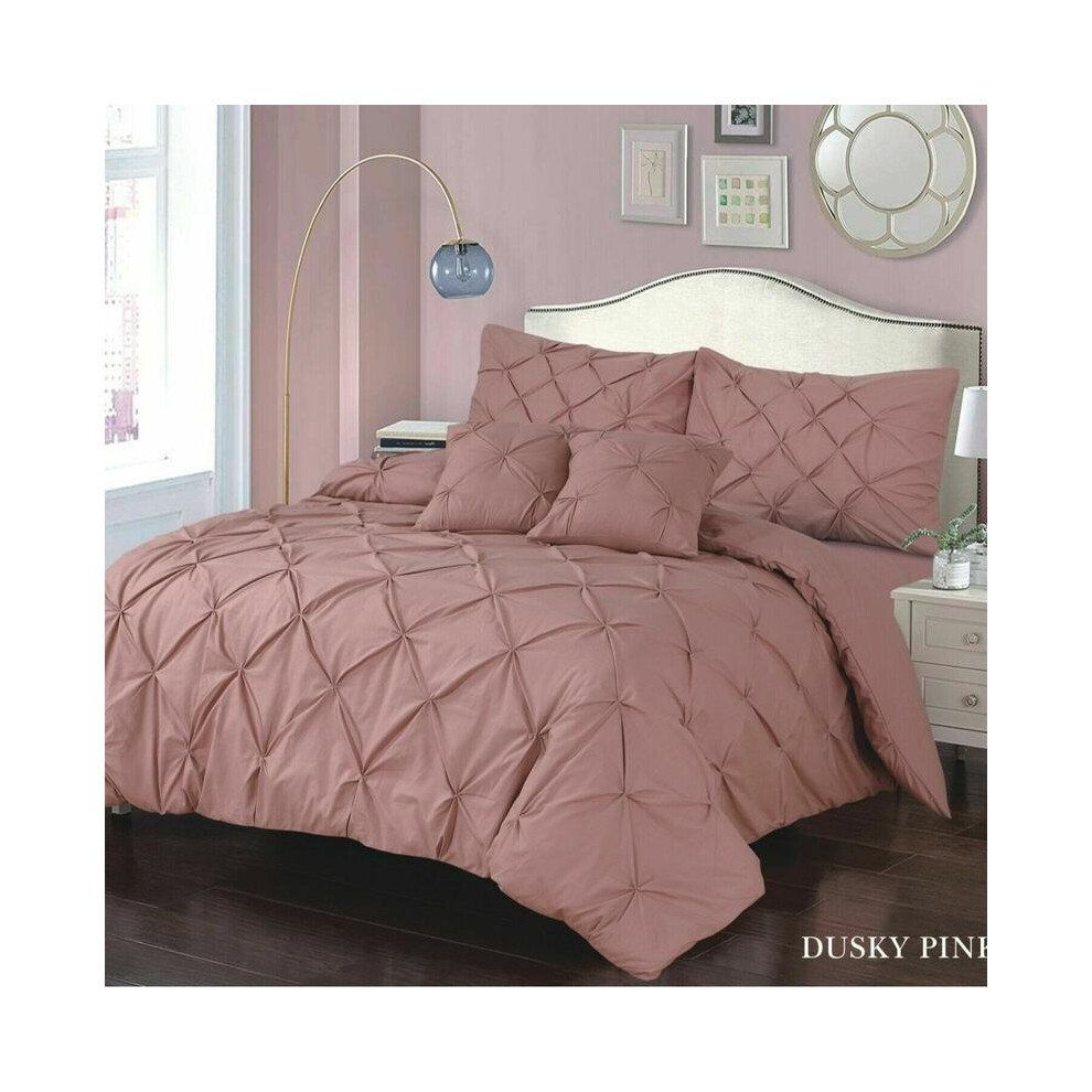 (Dusky Pink, Super King) ELIZA PINTUCK PLEATED DUVET QUILT COVER SET SINGLE DOUBLE SUPER KING SIZE BEDDING Soft Washable sets