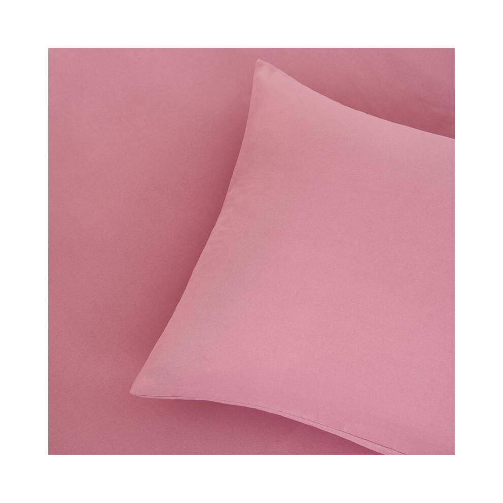 (Dusky Pink, Superking) OHS Plain Dyed Duvet Cover Quilt Bedding Set With Pillowcase Single Double King Size