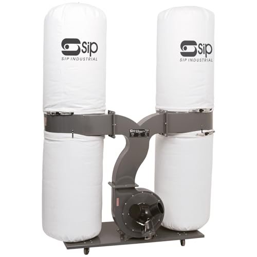 SIP Double Bag Dust Extractor Collector for Woodworking Workshop, 230V 2200W 3hp, 306L Capacity, 3900m³/hr Air Flow, 2 x 5 Micron Filtration with Triple Inlet Adapter for 3 Machines with 1 Collector