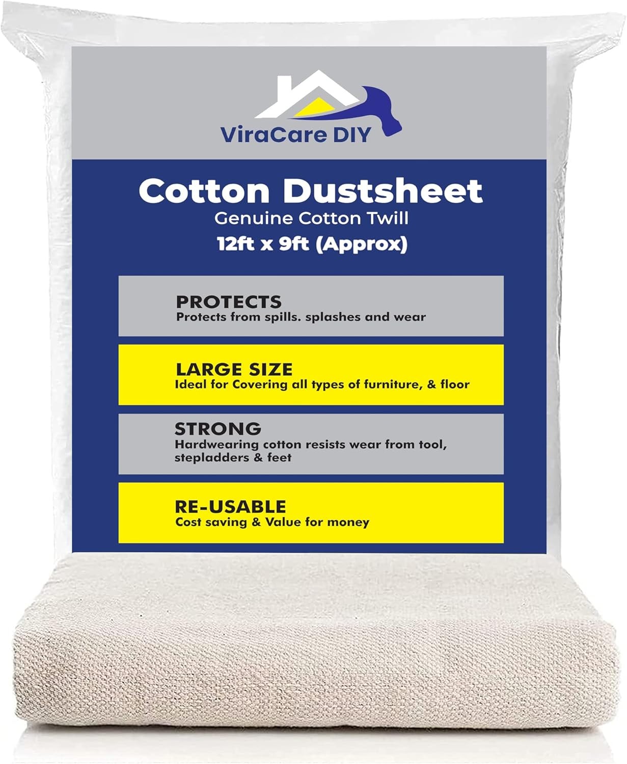Cotton Dust Sheets 12'x9' (3.6mx2.7m) for Painting & Decorating | Paint Sheets | Drop Cloth | Painting & Paint Cover Sheets | Dust Sheets for Furniture | Washable and Reusable | (1)