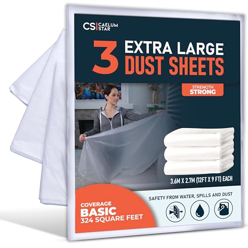 CS 3 Pack Plastic Dust Sheets for Decorating 3.6 x 2.7m (12x9 ft), Extra Large Dust Sheets for Painting, Clear Plastic Sheet Polythene Sheeting Painting Tools, Decorating Tools, Home Improvement