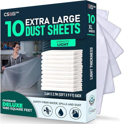 CS 10 Pack Plastic Dust Sheets for Decorating 3.6 x 2.7m (12x9 ft), Extra Large Dust Sheets for Painting, Clear Plastic Sheet Polythene Sheeting Painting Tools, Decorating Tools, Home Improvement