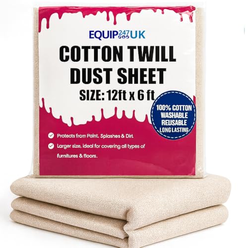 Cotton Dust Sheets for Painting & Decorating | Paint Sheets | Drop Cloth | Painting & Paint Cover Sheets | Dust Sheets for Furniture | Washable and Reusable | (Cotton Twill 12ft x 6ft / 3.66m x 1.83m)