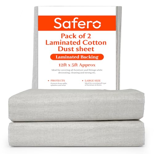 Pack of 2 Laminated Cotton Dust Sheets for Decorating, Waterproof 12ft x 9ft Dust Sheets Twill Laminated Polythene Backed Reusable Paint Sheets for Furniture, Floor, Staircase and DIY Projects