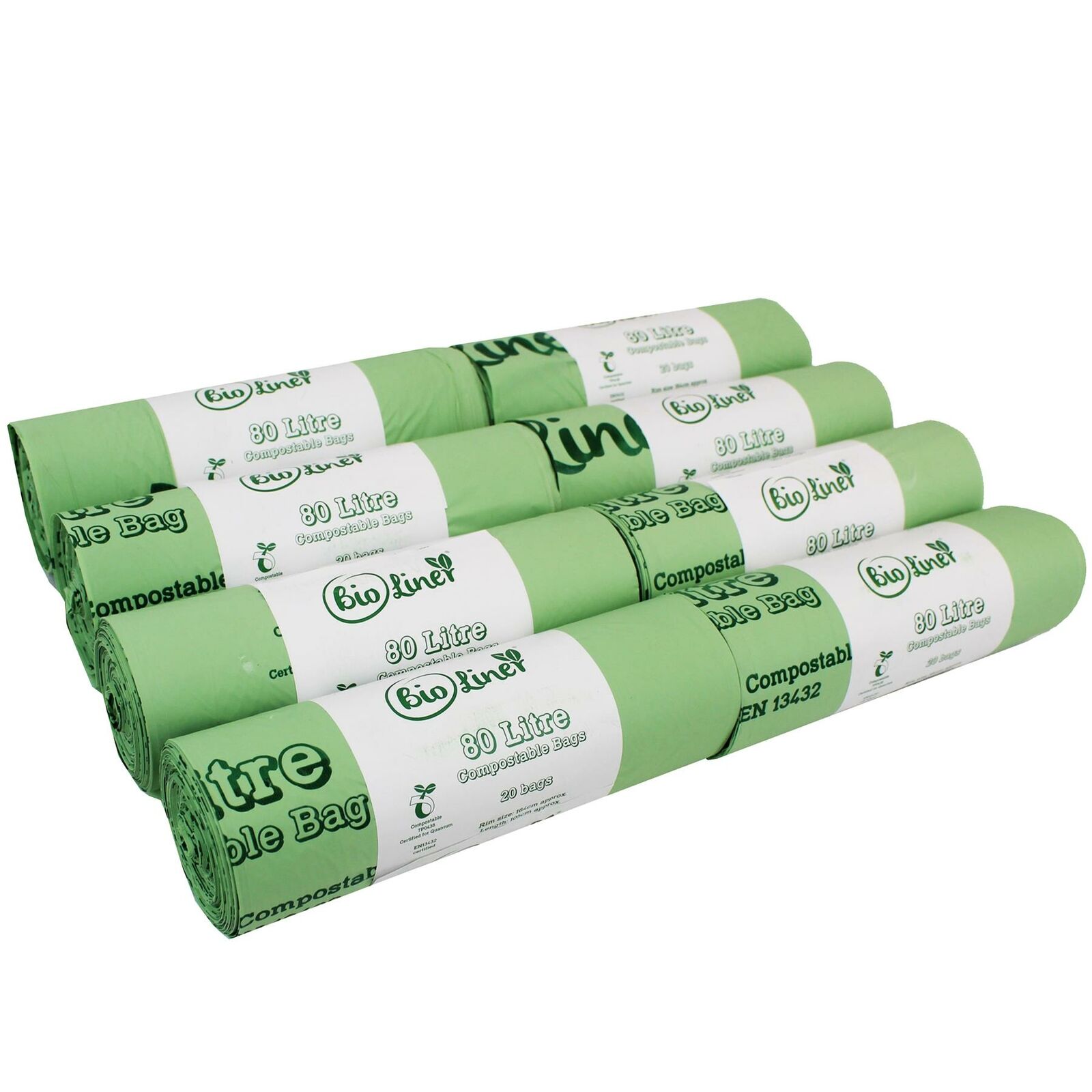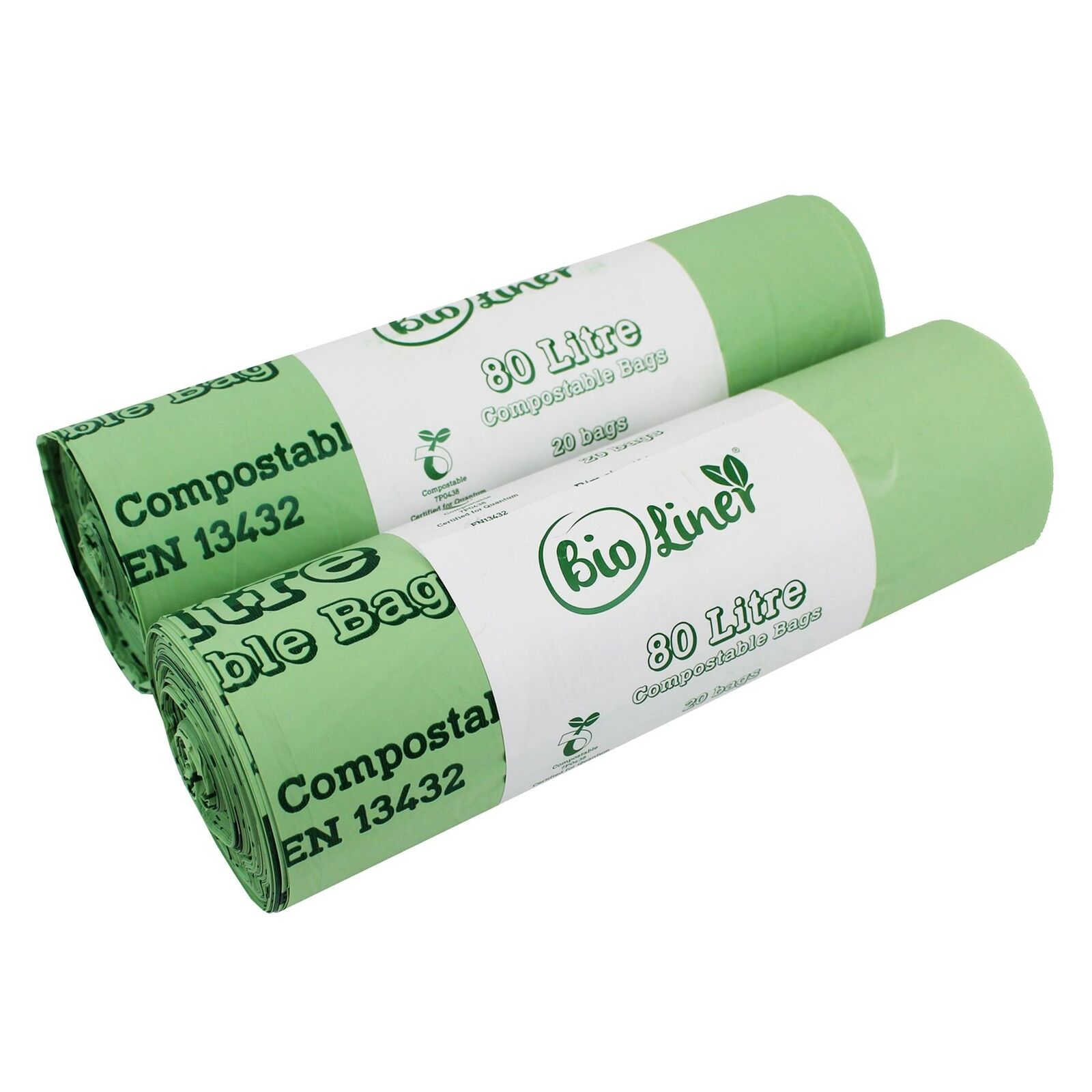 80 x 80L BioLiner Compostable Bags for Swing Bins & Dustbins (4 rolls)