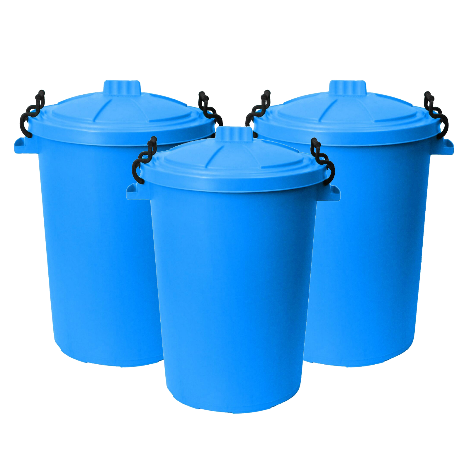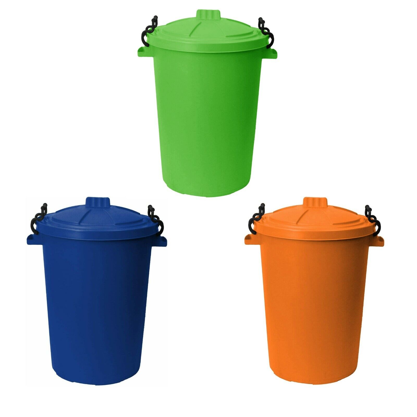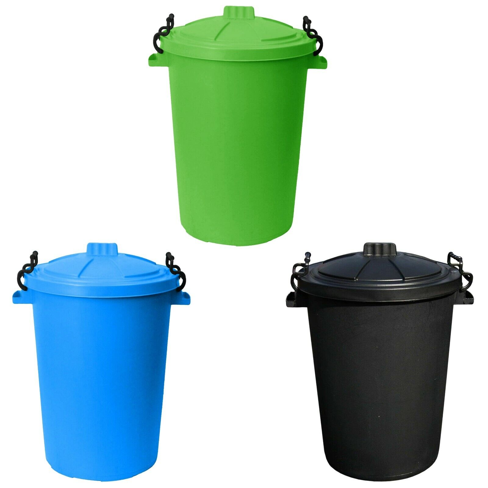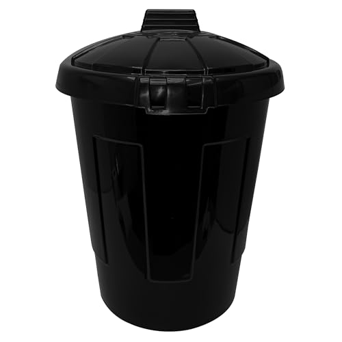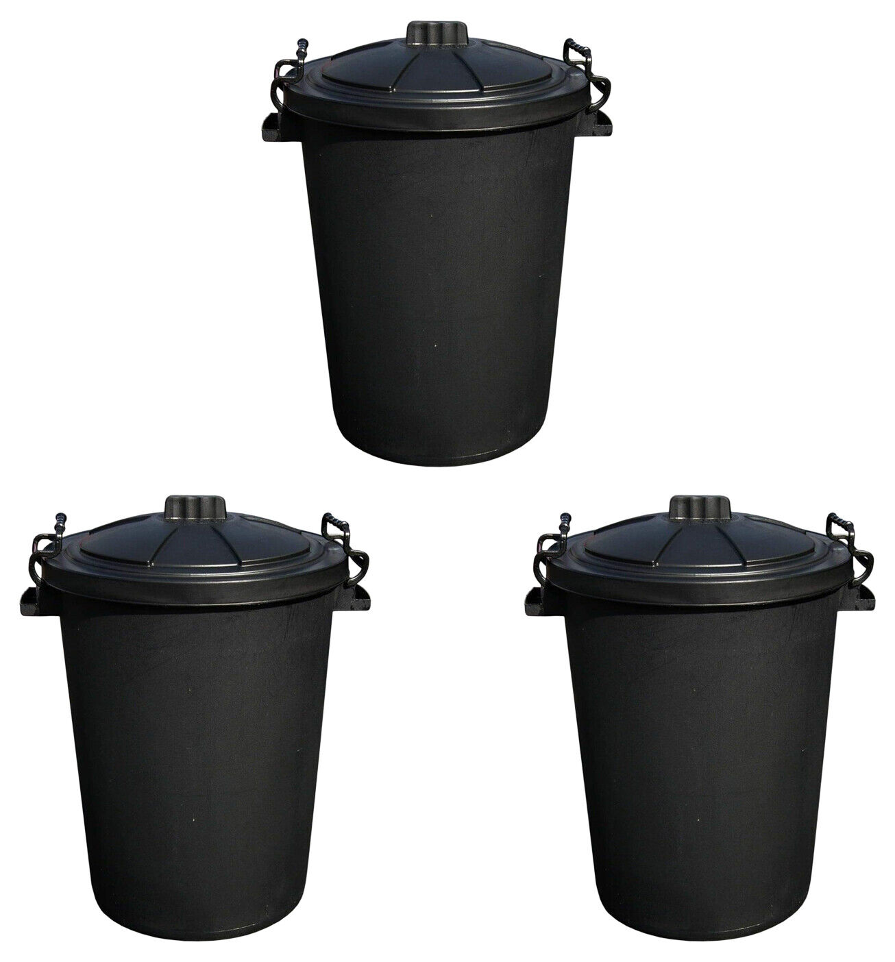 JMS we create smile (Set of 3) 85L Extra Large Heavy Duty Bin Plastic Dustbin With Clip Locking Lid Dustbins Rubbish Waste Trash Bin For Animal Feed Kitchen Home Garden (Black)