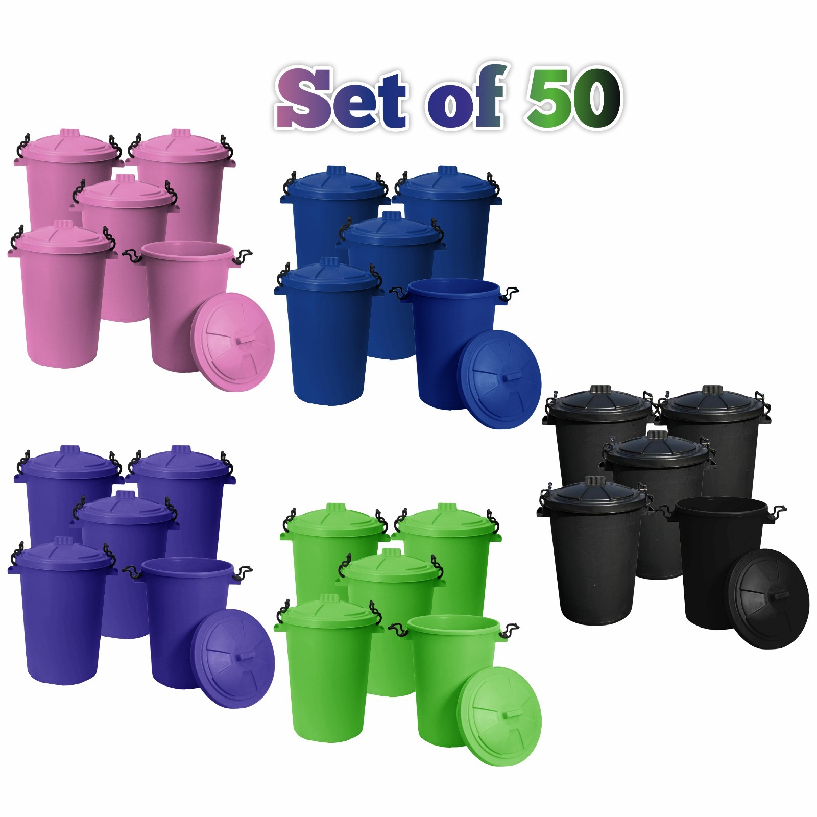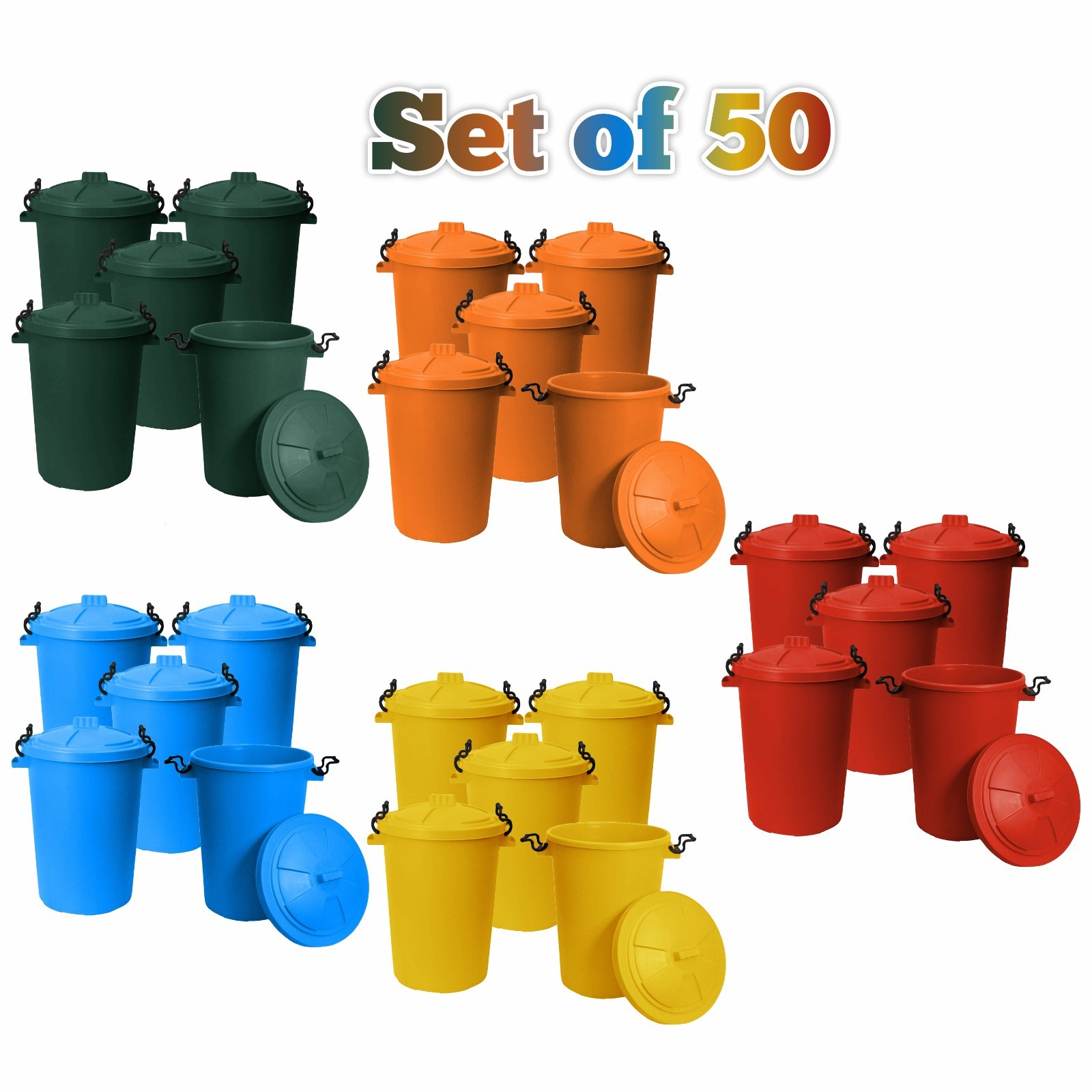 50 x 50L Kitchen Waste Bin Dustbins Clip Lock Lid Coloured Trash Bin Animal Feed