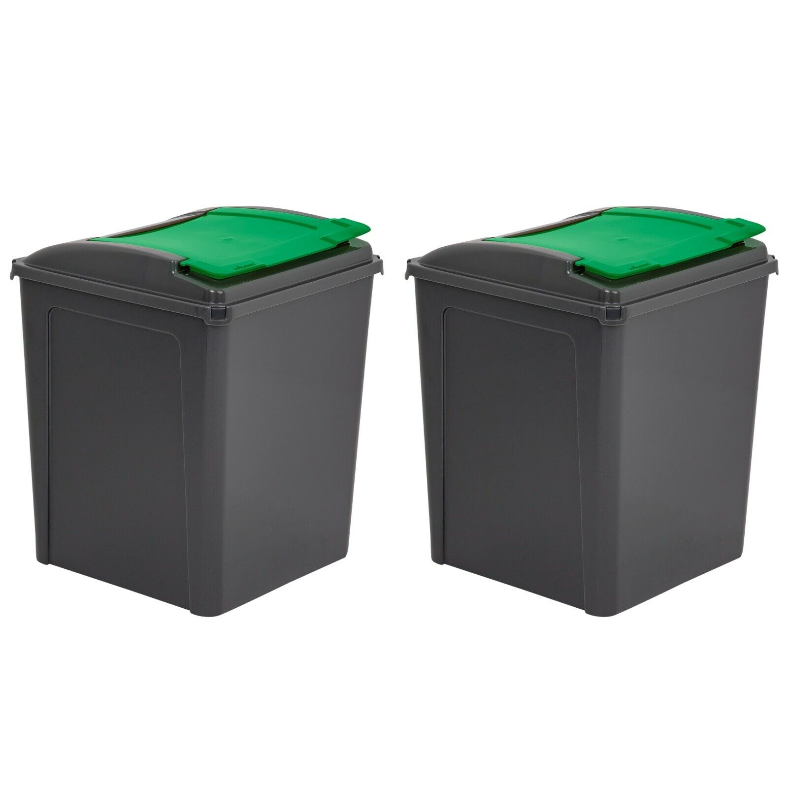 2 x Large 50L Plastic Recycle Bin with Green Flap Lid Waste Rubbish Dustbins UK
