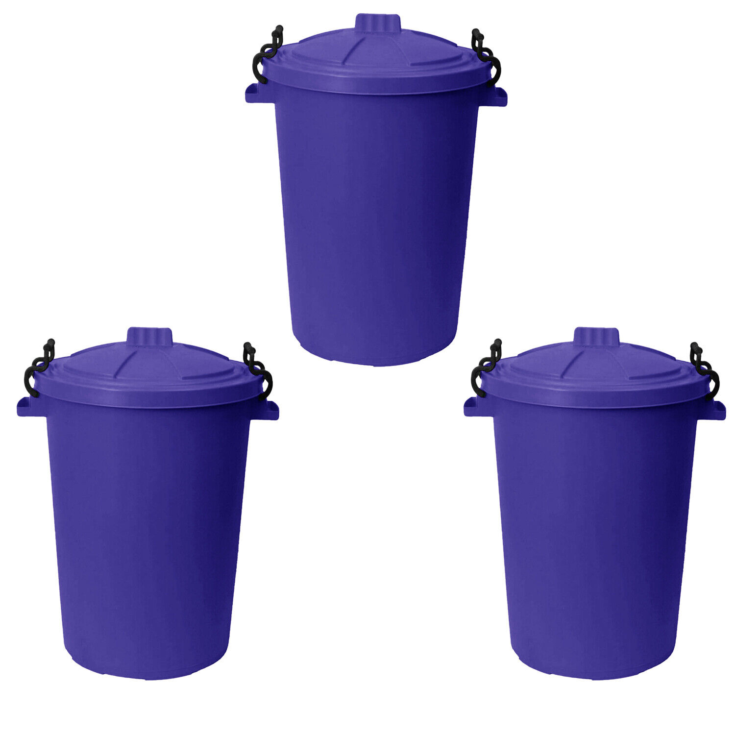 [Set of 3] 50L Heavy Duty Plastic Dustbins Home Garden Refuse Bins - Purple
