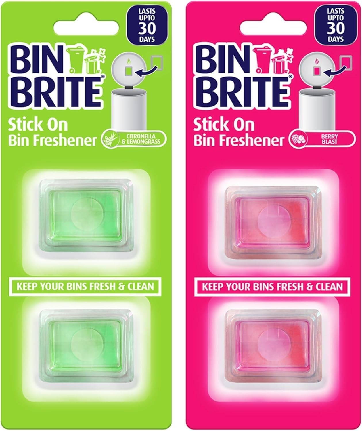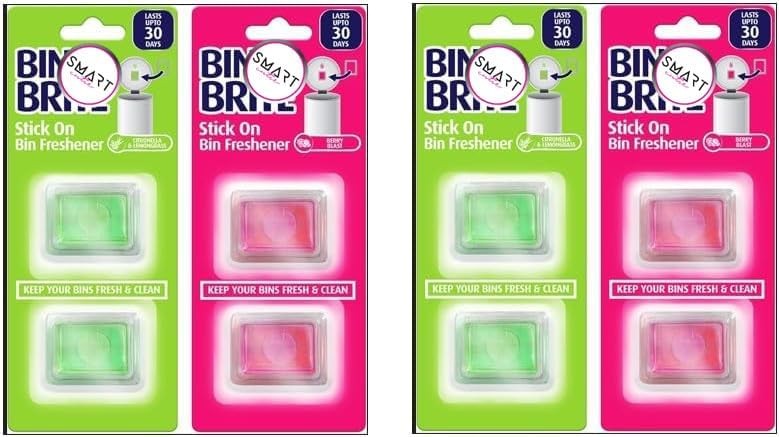 4 x Stick ON Bin Freshener Smelling FRESH Dustbins Swing Pedal Air Fragrance Berry Blast | Citronella & Lemongrass | UK FREE P&P