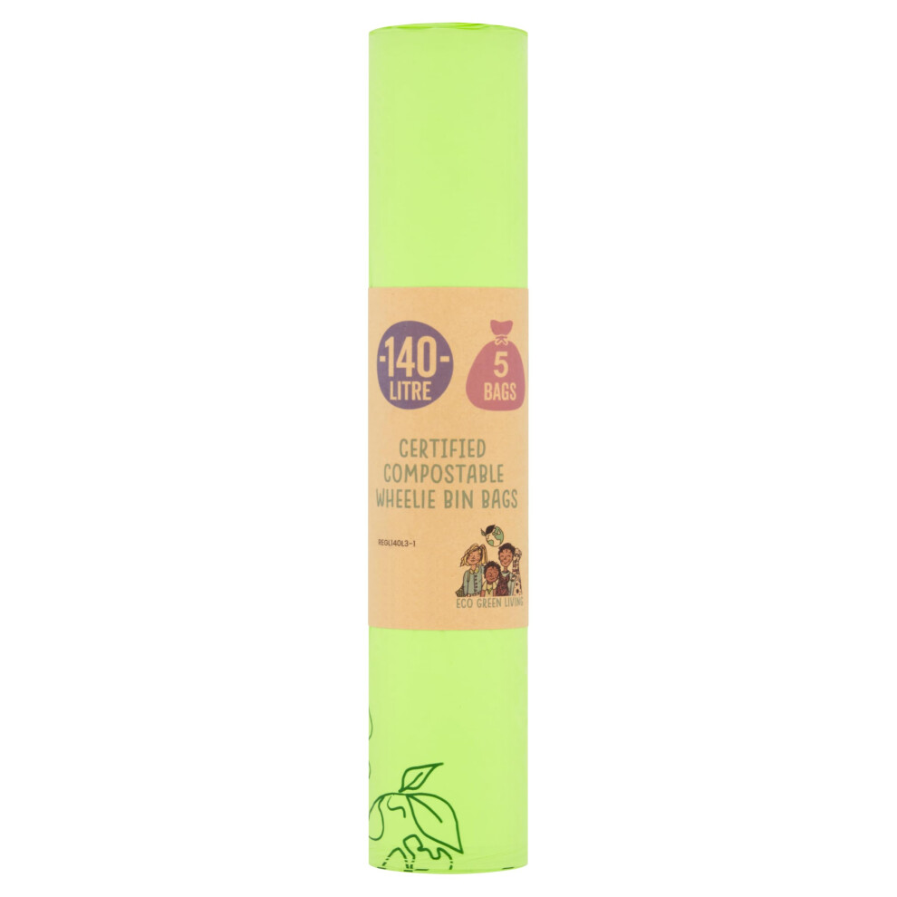 Eco Green Living 140L Wheelie Bin Liners, Plastic Free Strong and Durable Refuse Sacks for Small Wheelie Bins, Dustbins and Household Waste, Tie