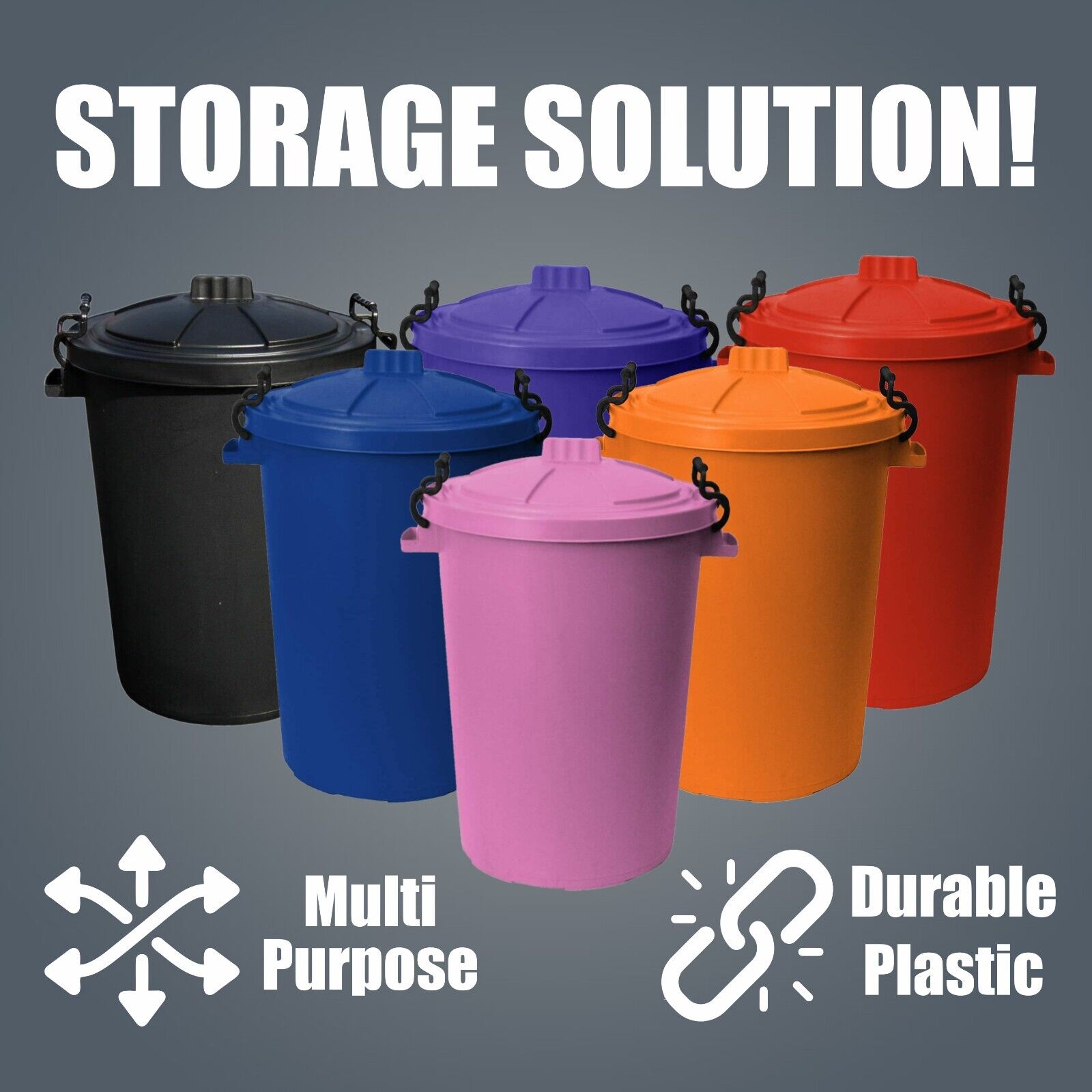 3 x 50L Bin Clip Lock Lids Garden/Kitchen Bird Seeds Waste Rubbish Dustbins-UK