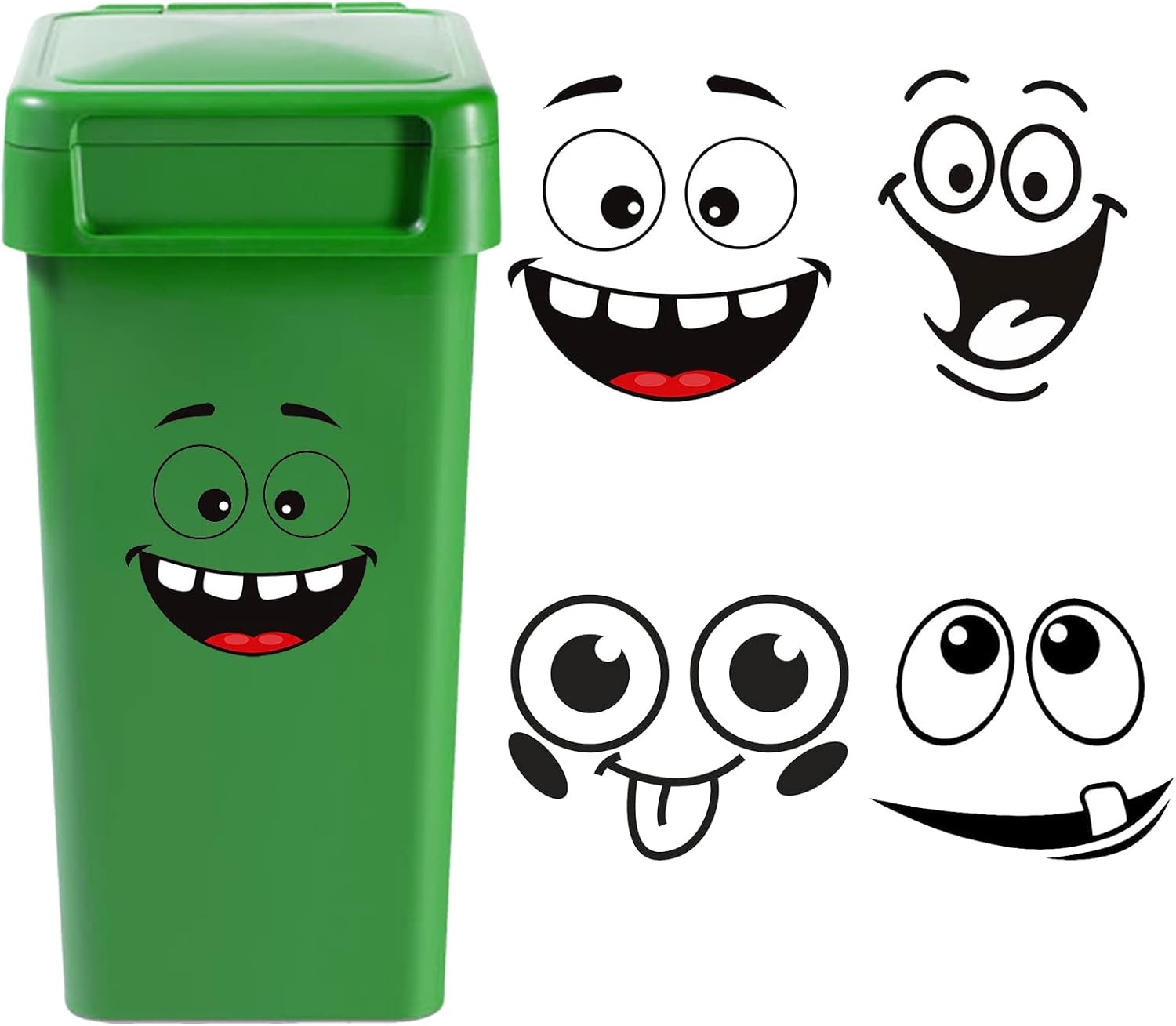 Funny Wheelie Bin Stickers - 4 Sheets Cartoon Expressions for Dustbins, Eyes and