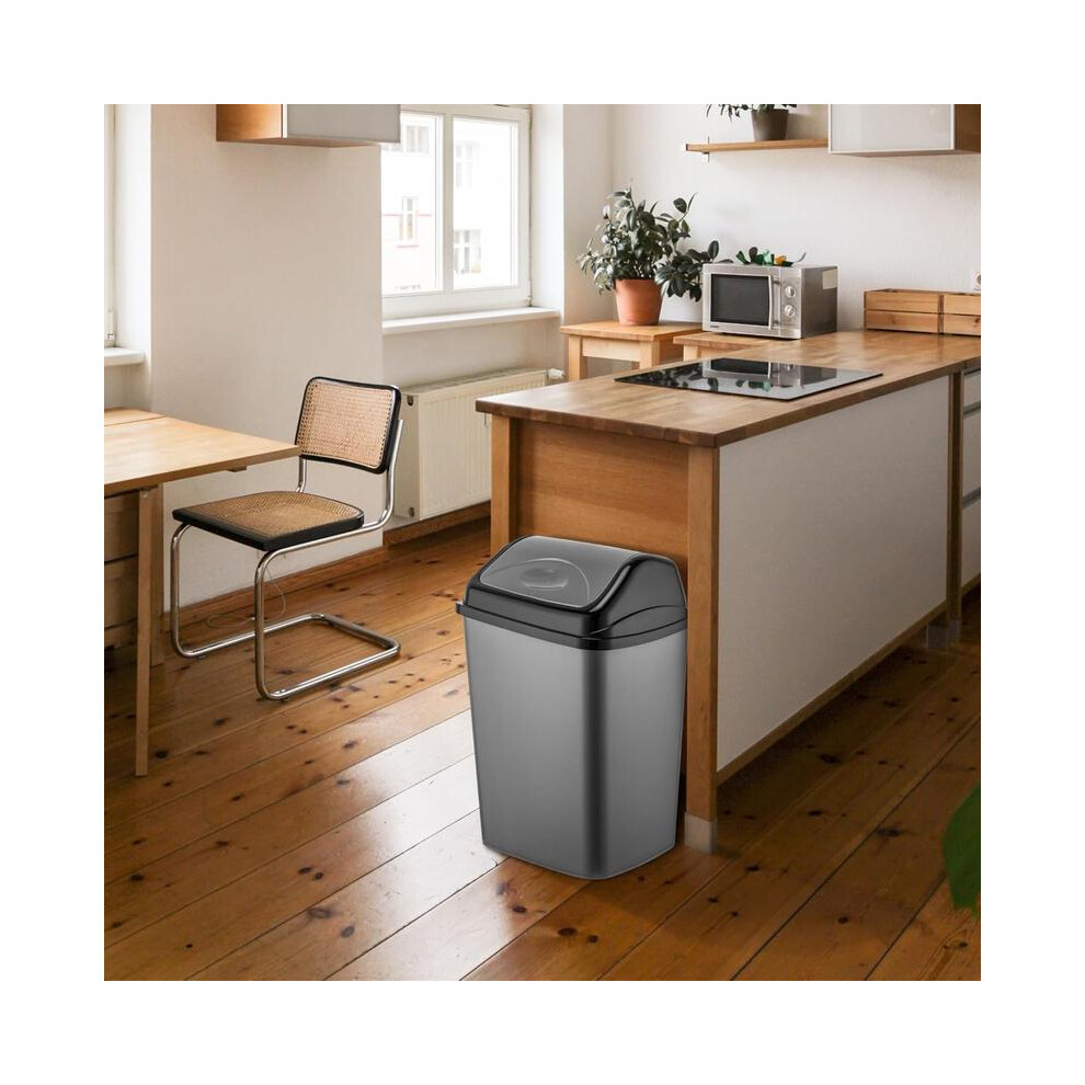 VTL 50 LITRE PLASTIC WASTE SWING BIN - KITCHEN - HOME - RUBBISH - DUSTBINS - SILVER