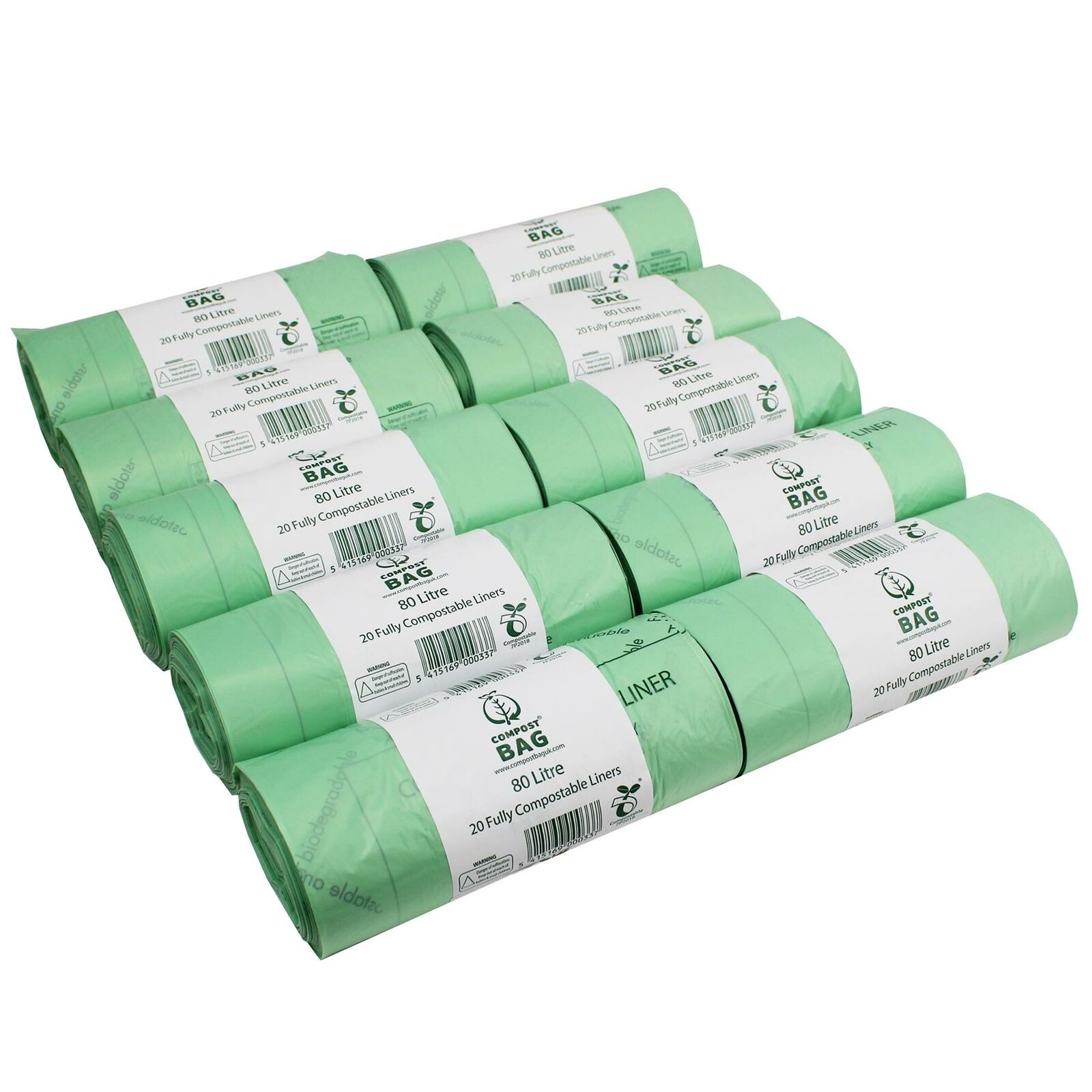 200 x 80L BioLiner Compostable Bags for Swing Bins & Dustbins (10 rolls)