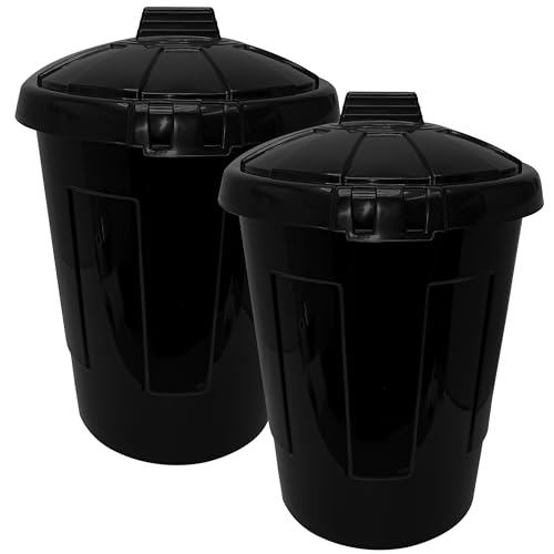 KMJ 80L Industrial Grade Large Black Outdoor Bin-Heavy Duty Dustbins with Lids for Outside,Garbage Bin for Home,Garden & Yard Work–Perfect Kitchen Bin 80L for Waste Disposal & Recycling (2 Pack)