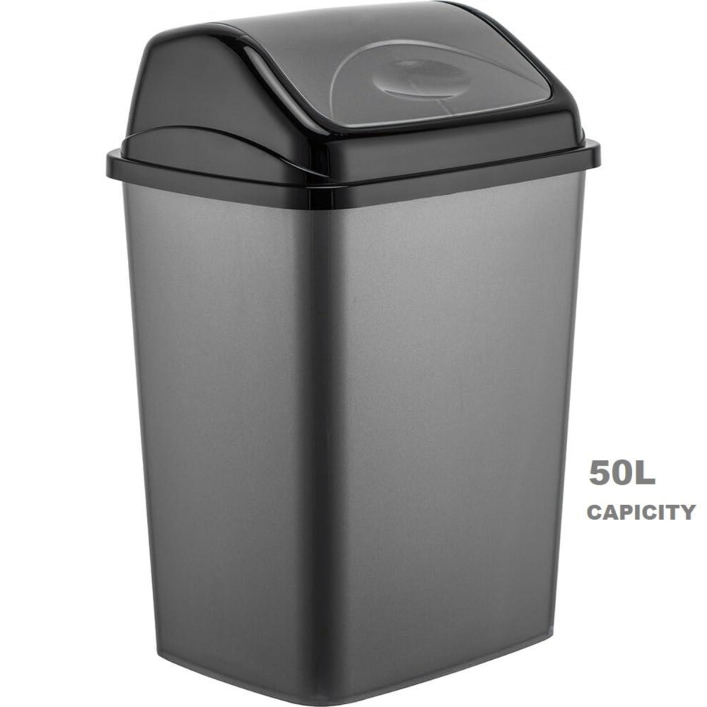 VTL 50 LITRE PLASTIC WASTE SWING BIN KITCHEN HOME RUBBISH DUSTBINS BLACK