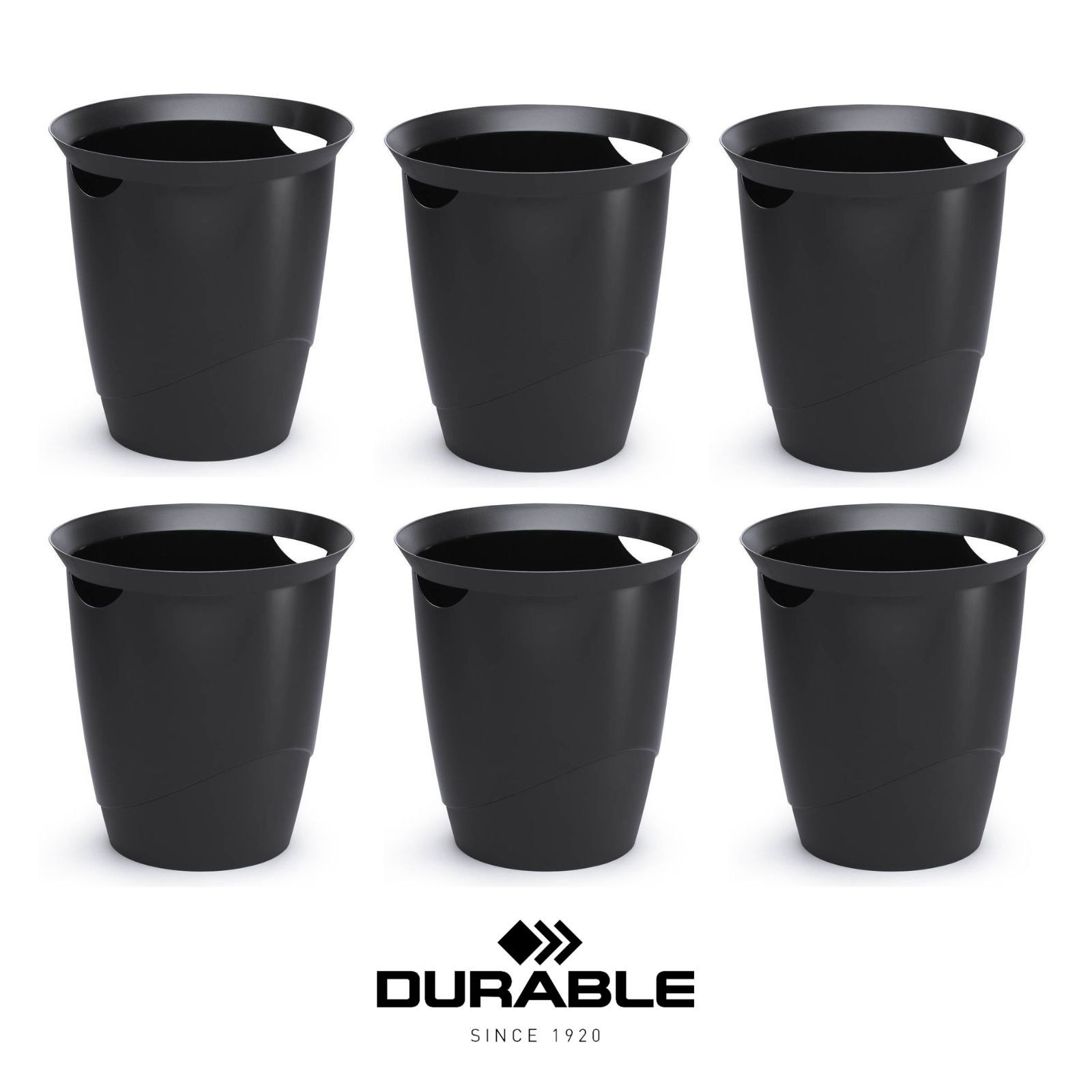 16L Wastepaper Bin Black Plastic Round Rubbish Basket Dustbins - Pack of 6
