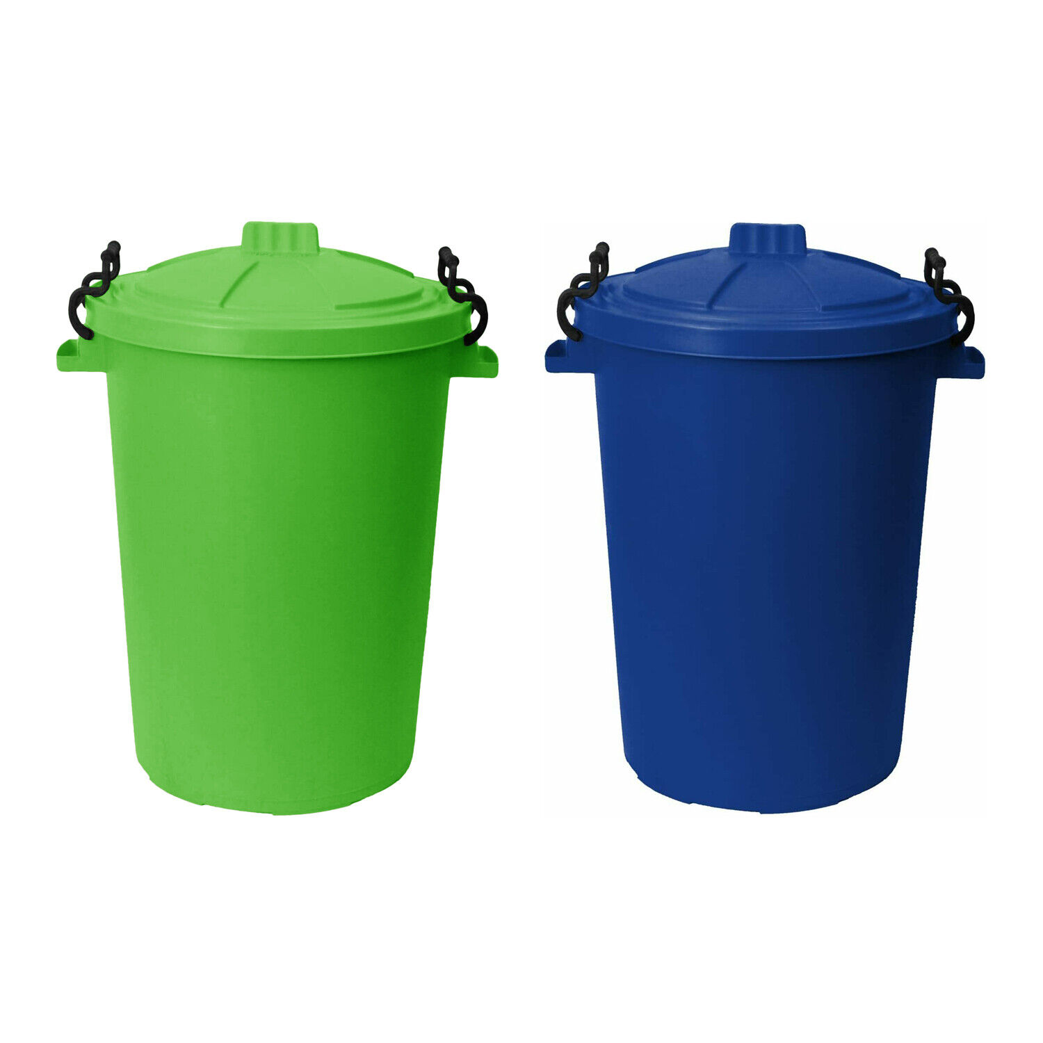 [Set of 2] 50L Bin Clip Lock Lid LIMEGREEN & BLUE Waste Feed Storage Dustbins UK