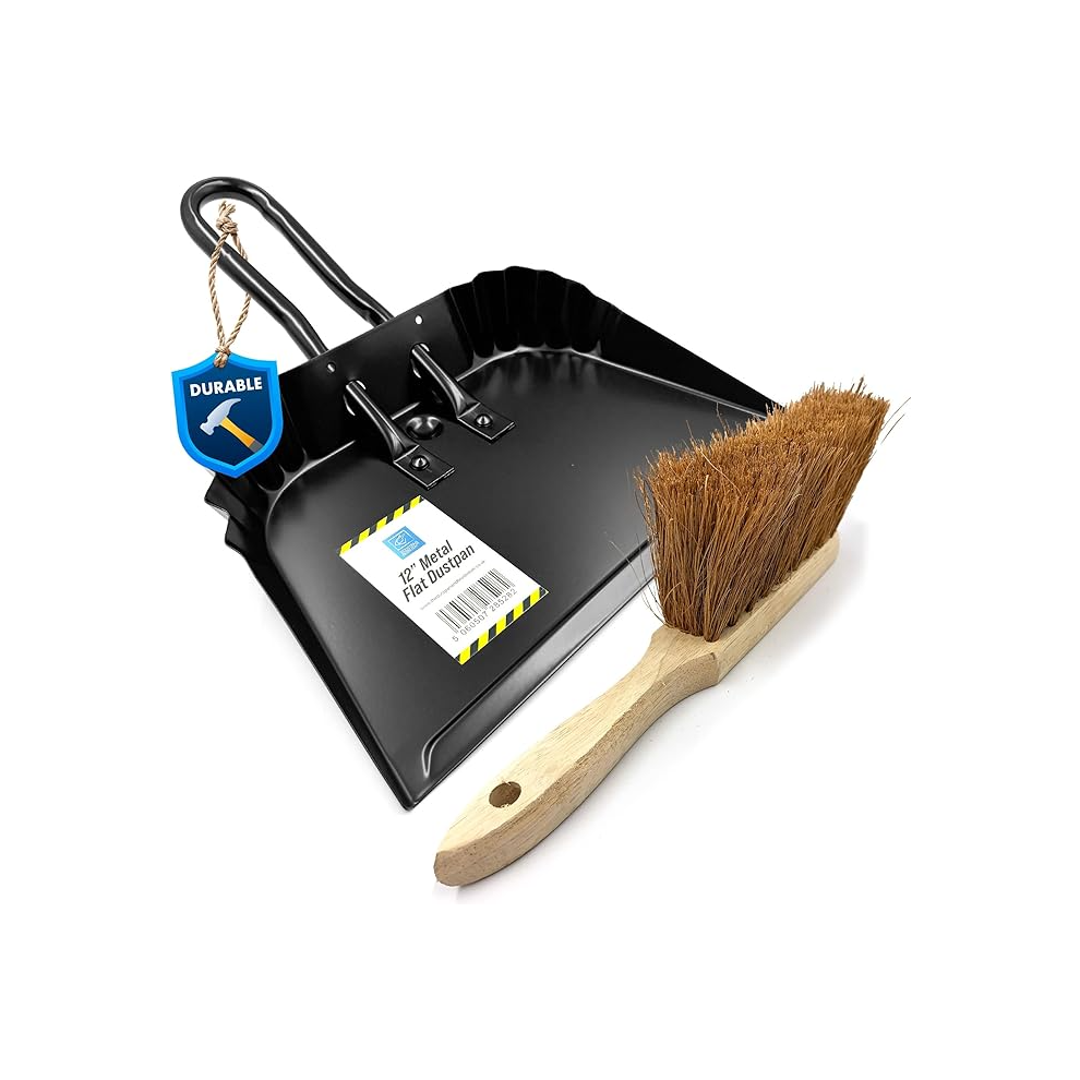 Metal Dustpan and Brush Set With Flat Lip for Better Floor Contact